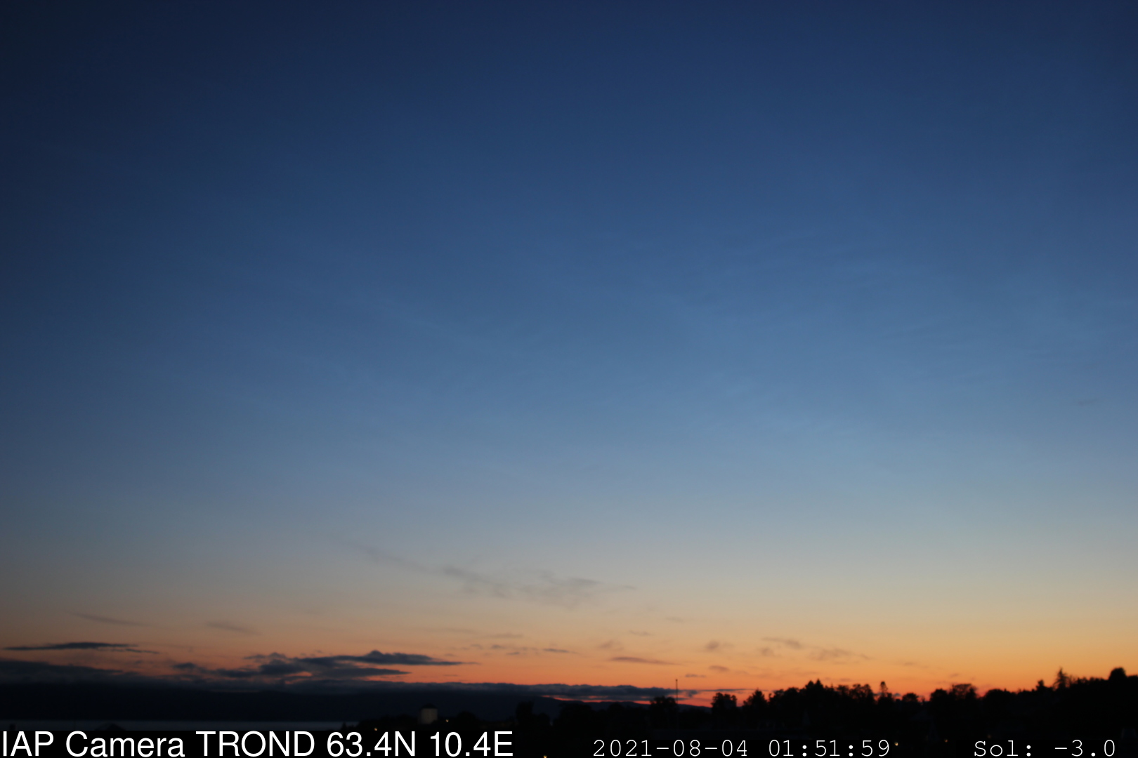 Die NLCs treten aktuell auch auf norwegischen Webcams, z.B. in Trondheim, 63.4N in Erscheinung.