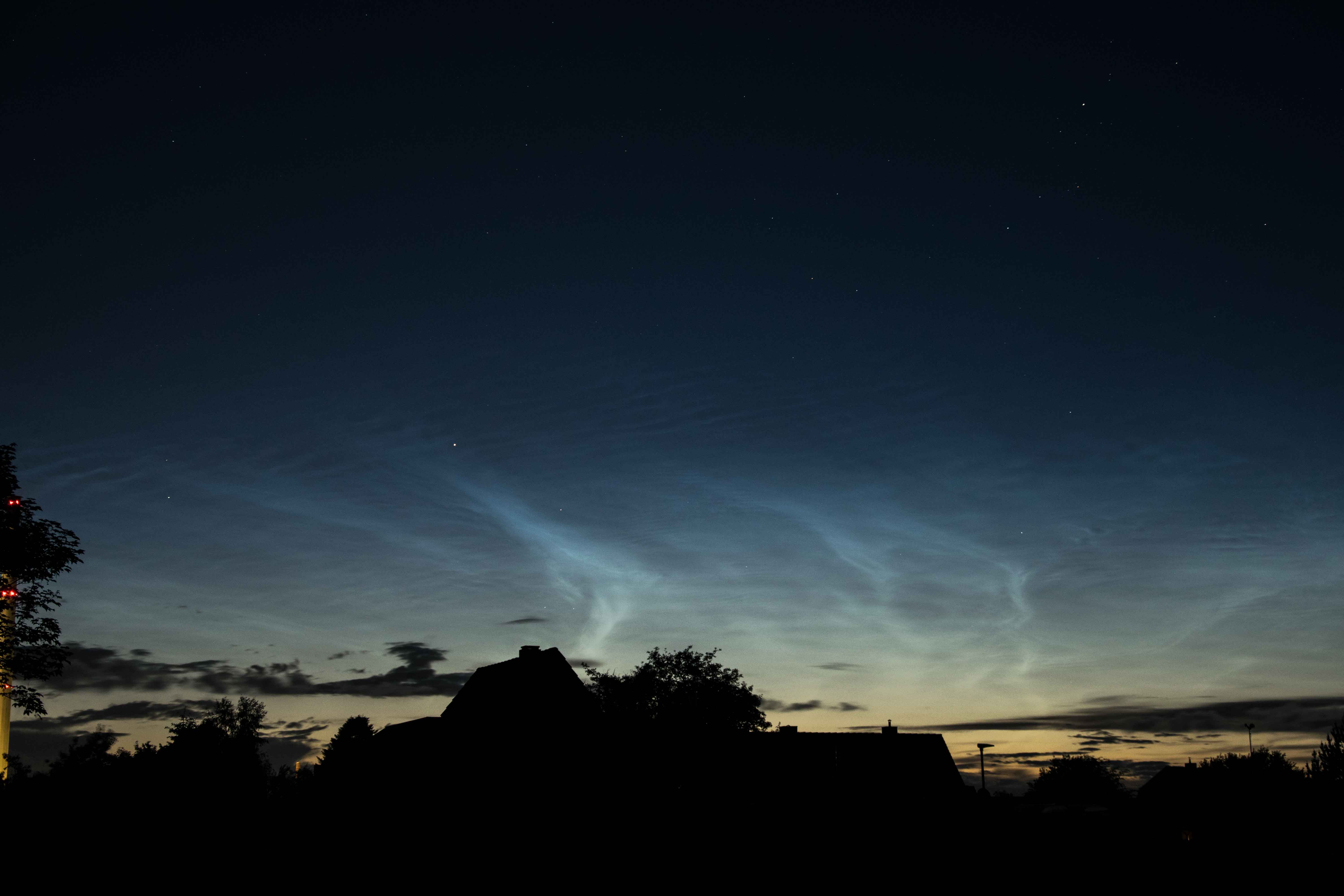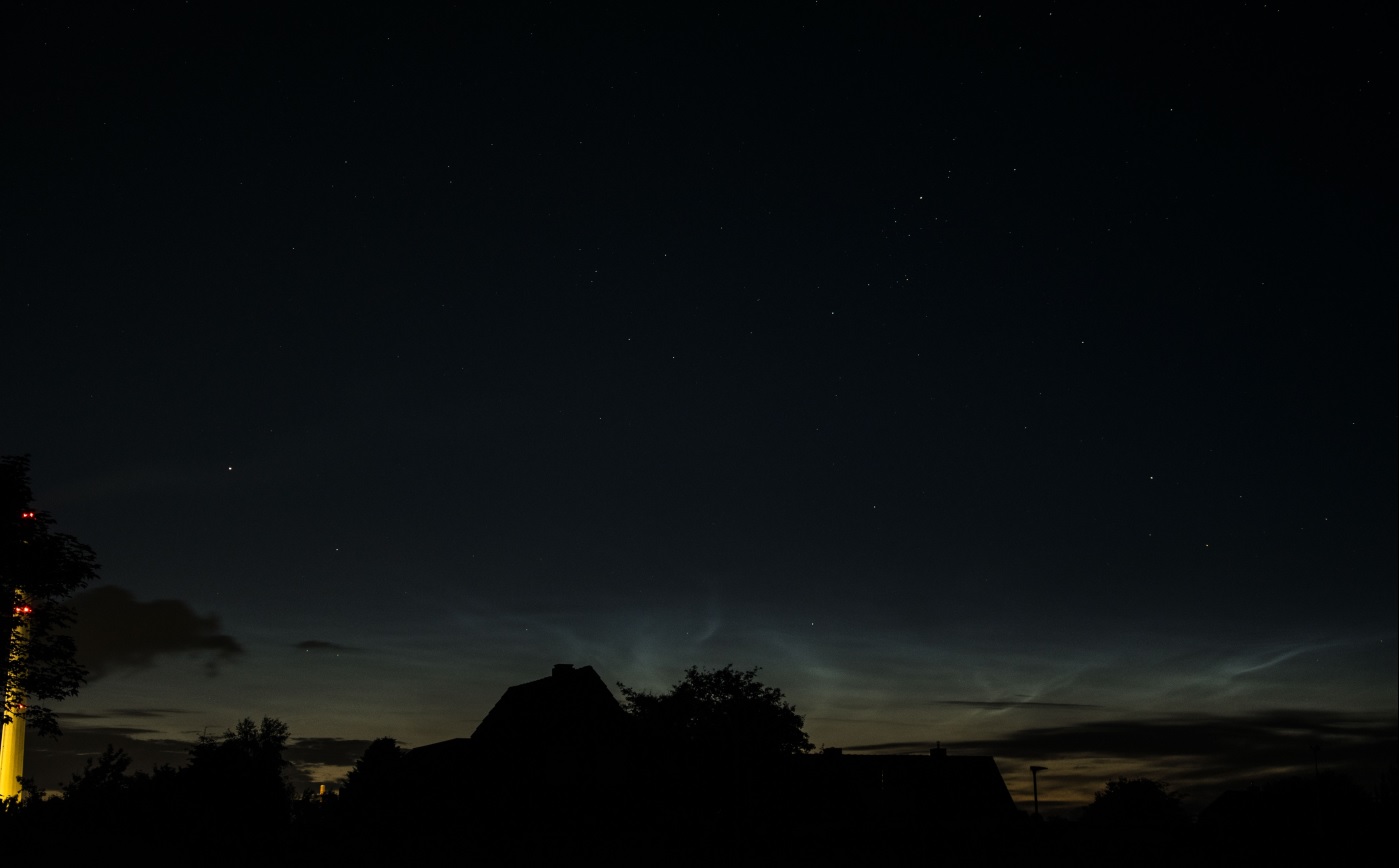 Ein Fetzen Gewölk sah verdächtig aus. Deshalb bin ich wieder rein und habe die Kamera geholt. In der kurzen Zeit hatte sich die Unsicherheit ob oder ob nicht NLC gelegt. Sie waren nun eindeutig. Also kurz einige wenige Fotos machen. So war der Plan.