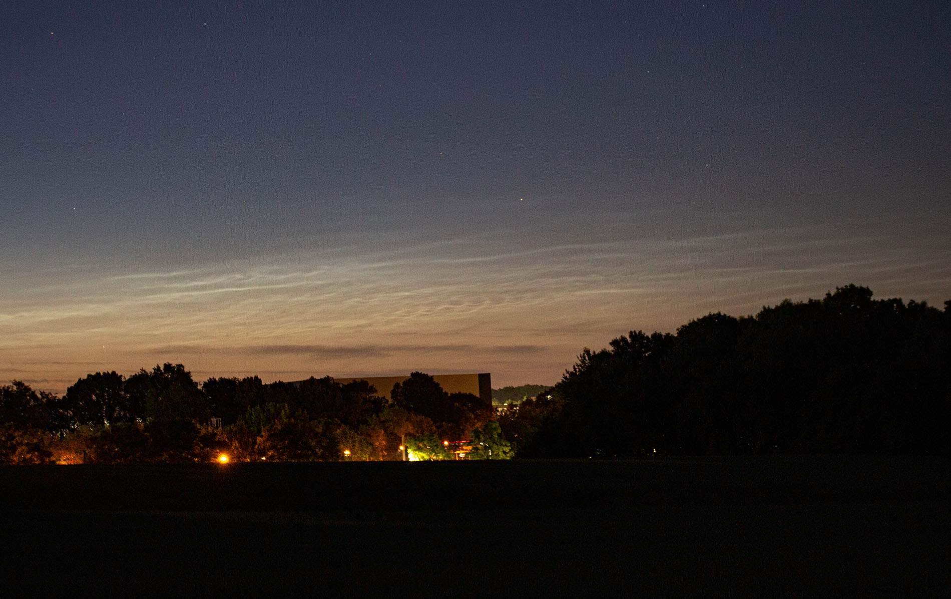NLCs am Steinhuder Meer, Blickrichtung Nord, Höhe ca. 10 Grad. Schwach erkennbare parallele Bänder