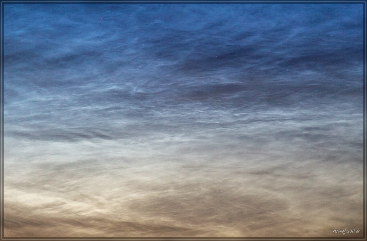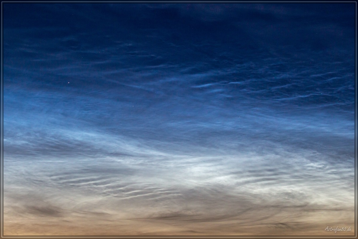 Die NLCs wurden derweil und im Verlauf immer heller, gegen 23:40 MESZ konnte ich eine überzeugende "2" bei der Helligkeitseinordnung vergeben: