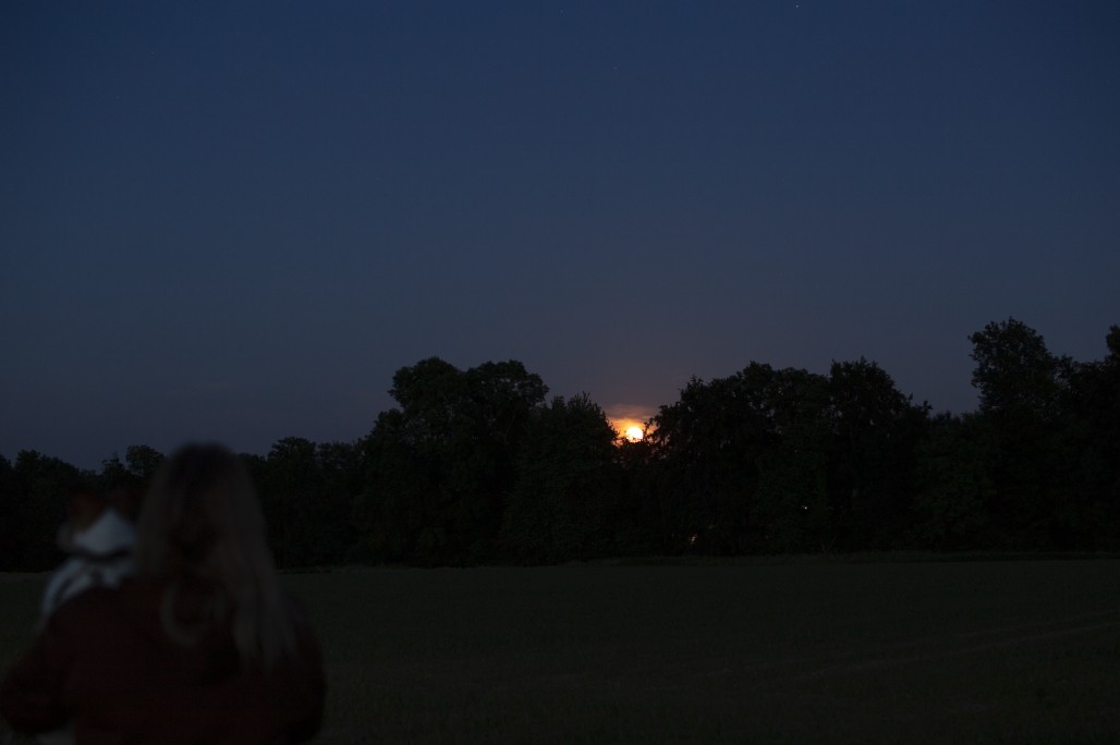 Meine Begleitung war zu diesem Zeitpunkt noch etwas irritiert am Suchen, was ich dort am klaren Himmel identifiziert hatte. Derart schwer waren die Strukturen zu erkennen. In den folgenden Minuten beschäftigten wir uns dann mit dem aufgehenden Vollmond, der in diesen frühen Nachtstunden seinen goldenen Schein auf die Landschaft projizierte.