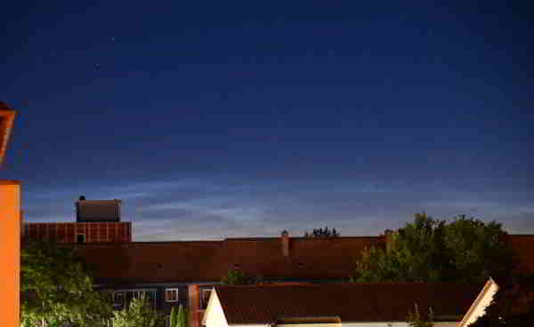 Ergänzung: Hatte nachfolgend noch ein paar mal kurz aus den Fenster geschaut. Es blieb letztendlich bei dem vagen Durchscheinen eines NLC-Zipfels nach 3Uhr durch die Baumwipfel. (Hellere) NLC-Ausläufer sind im Morgensektor, von Berlin aus gesehen, also wahrscheinlich nicht höher als grob ca. 10° Elevation gestiegen, und blieben dadurch dauerhaft von den Bäumen im Park Richtung Norden verdeckt.
