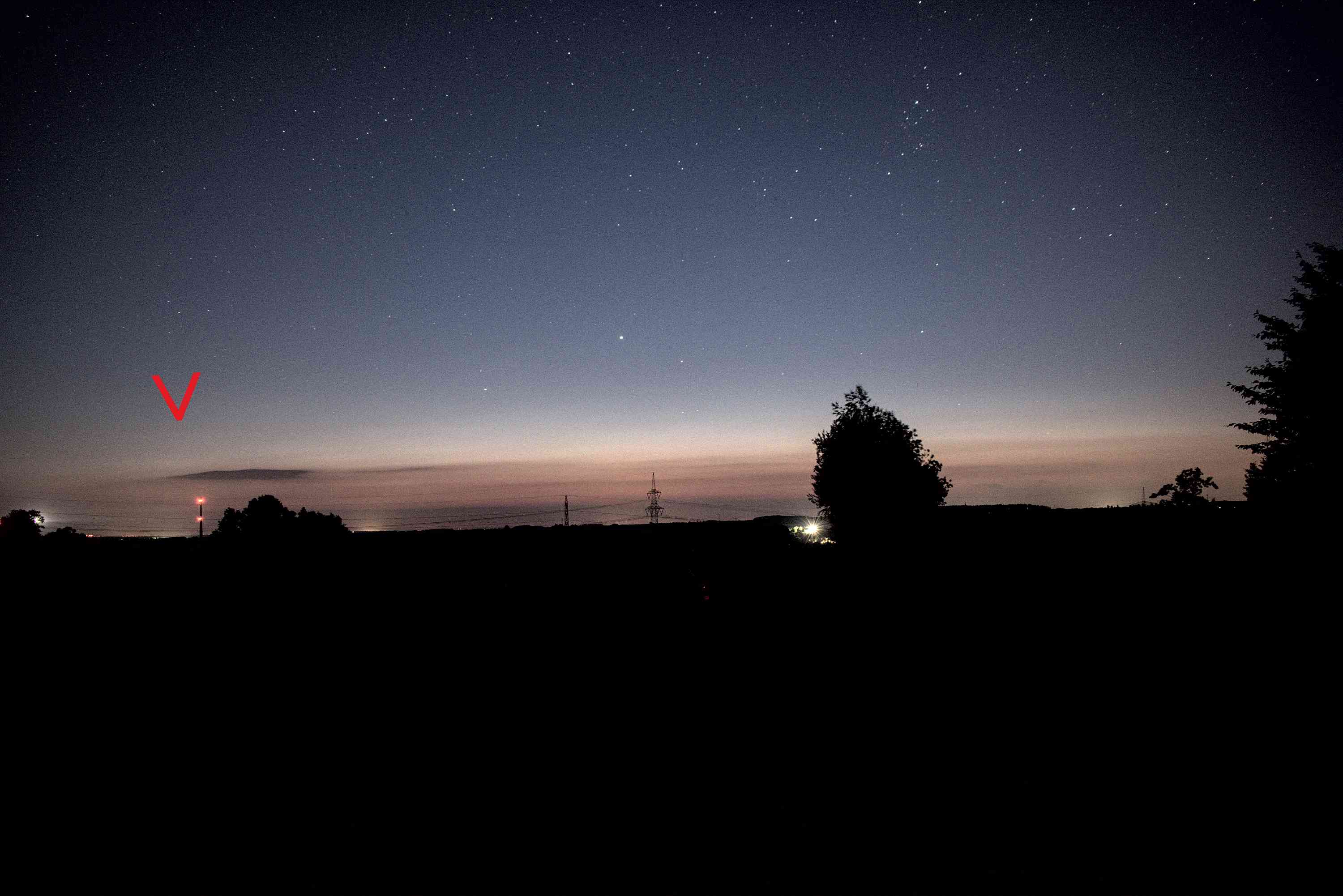 Wieder sehr dürftig. Wenn ich meine Bilder aber mit denen von Simon abgleiche könnte das von der Höhe, Azimut und Struktur passen.