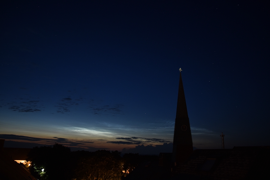 Das im weiteren Verlauf der Nacht von anderen Beobachtenden im Chat des Forums beschriebene weitere NLC-Feld wurde in Pasewalk leider von troposphärischen Wolken verdeckt. Der Nordhimmel zog nach Mitternacht komplett zu.
