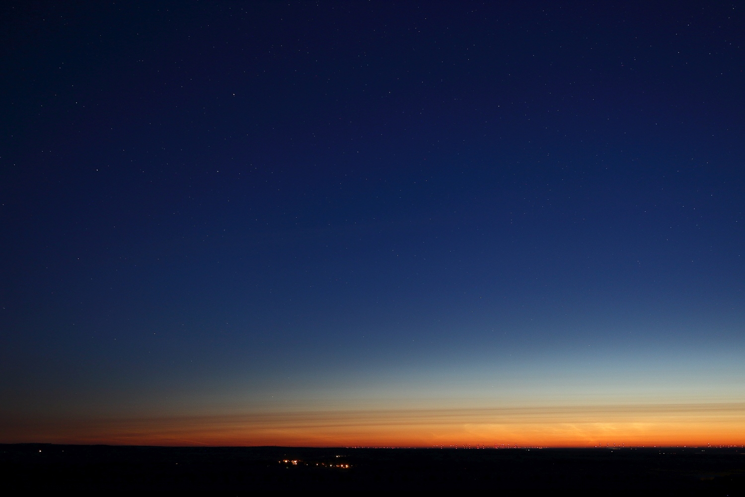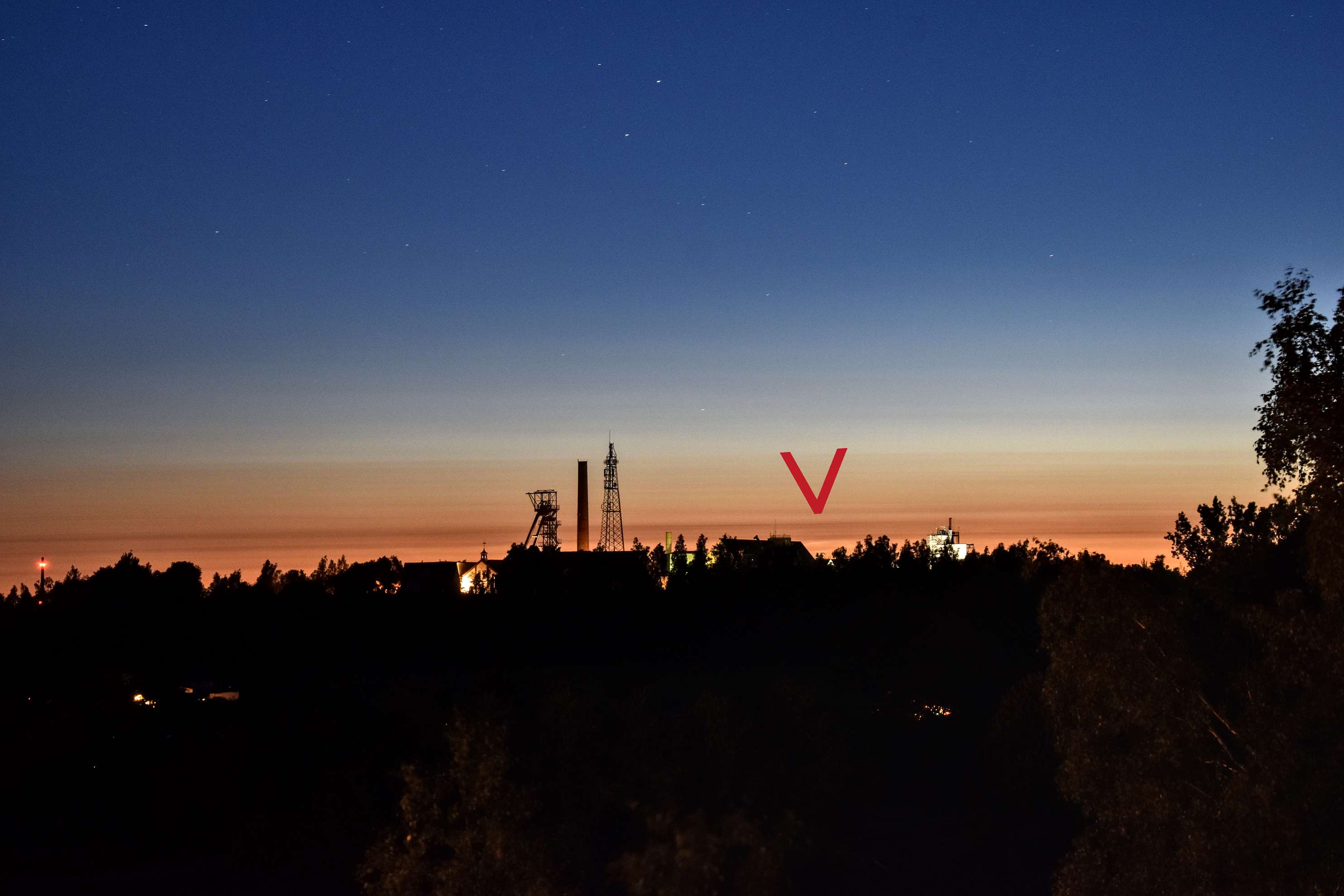 Als ich um etwa halb 3 (MESZ) wach geworden bin und wenige Minuten später vor der Tür stand, kroch die nassfeuchte Kälte in meinen Nacken. Zudem war es auf der Südseite vom Wiehengebirge recht nebelig, weshalb ich mir eines Nachweises an meinem Standort einmal ungewisser war. Kurz und knapp, hat funktioniert - sogar mit Polarlicht!