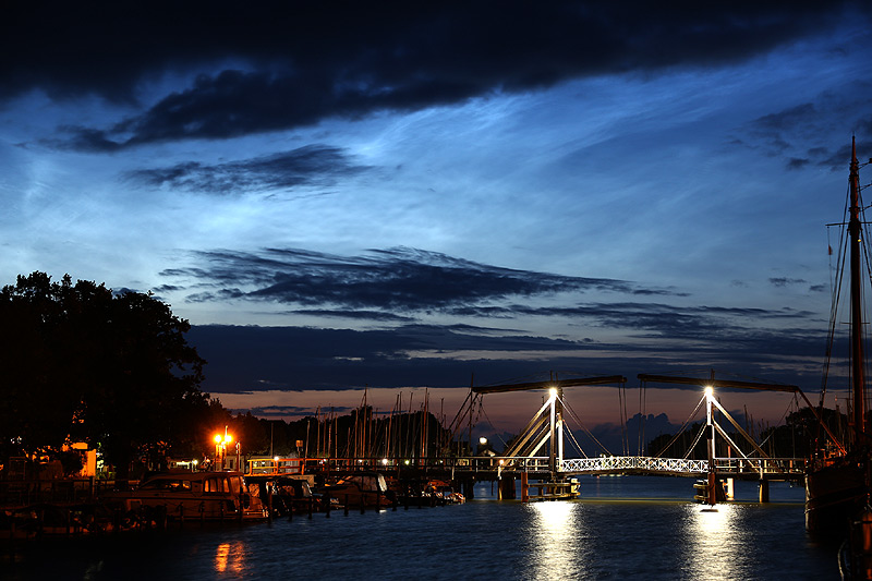 Aufnahmen 2 bis 4 - Greifswald Wieck, NLC über der alten Brücke, in einer sich schnell schließenden Wolkenlücke. Zeit 03:50 Uhr MESZ.