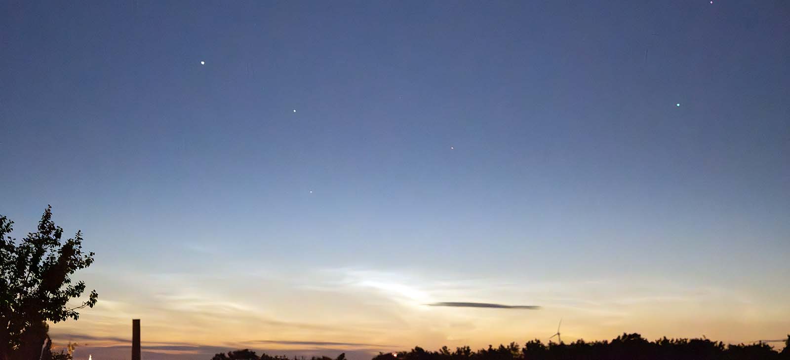 Anbei ein paar Bilder (es handelt sich hierbei um Ausschnitte aus 50mm-Aufnahmen, da die NLCs nur horizontnah standen):