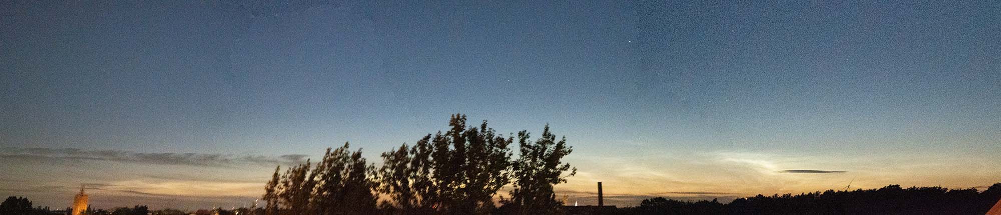 - Sonne nur noch ca. 10° unter dem Horizont, wodurch schwache NLC bereits durch die Dämmerung kaschiert würden, eine kräftige NLC-Entwicklung jedoch noch hell erschiene ...