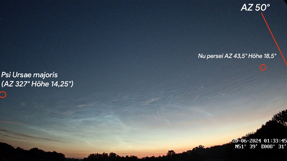 Zum Schluss versuchte ich nach 3Uhr, einen Zenitdurchgang zu erkennen, was weder visuell noch fotografisch gelang. Die Dichte der NLCs reichte dafür wohl nicht aus.