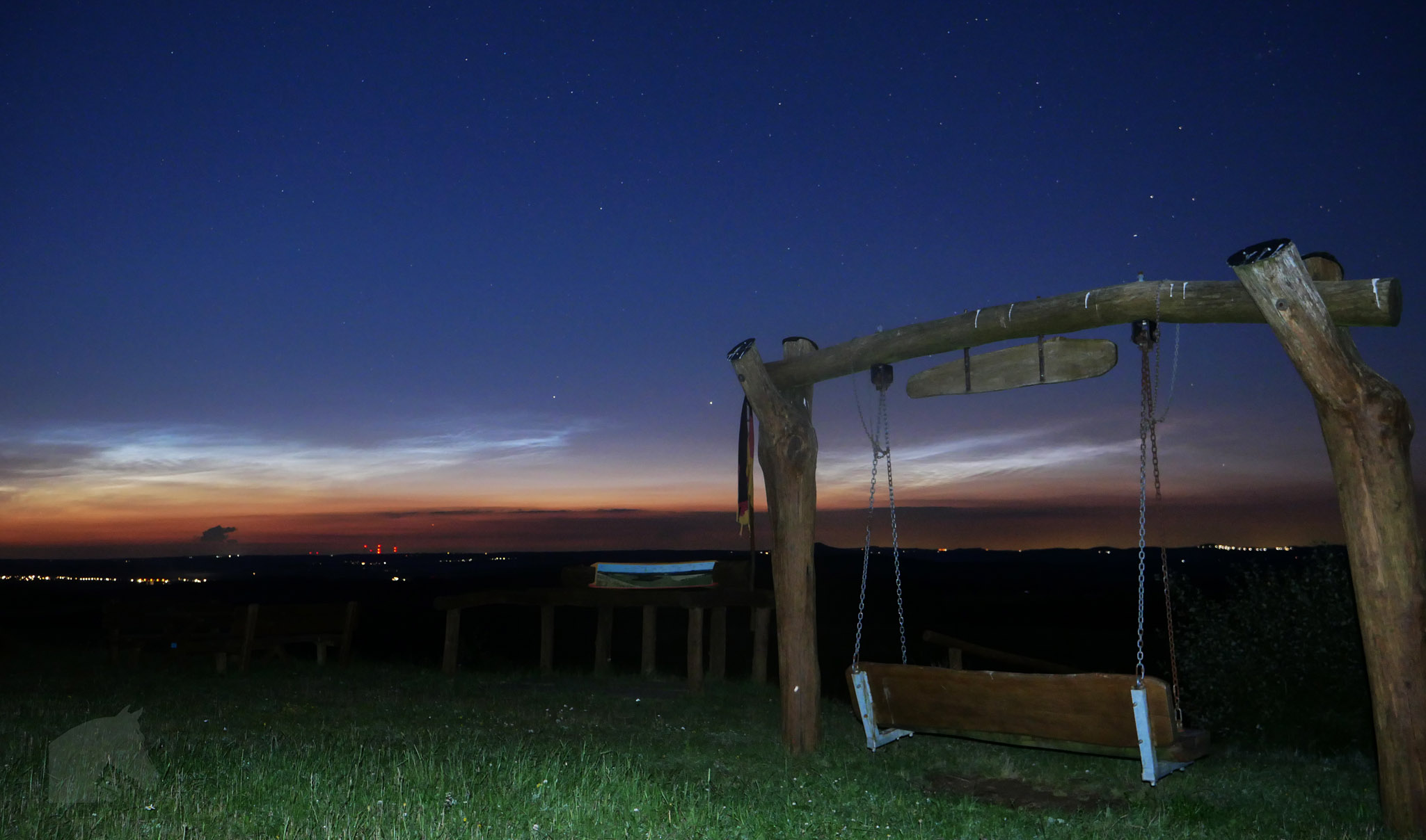 Eine erste Panorama-Aufnahme des Dämmerungshimmels habe ich um kurz nach 23 Uhr angefertigt, wobei bis zu diesem Zeitpunkt noch viele weitere Strukturen sichtbar wurden: