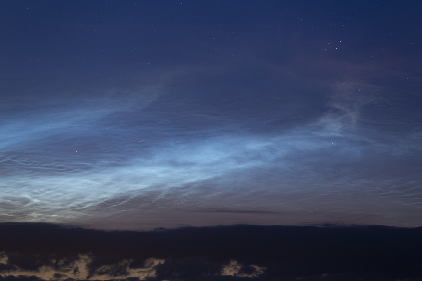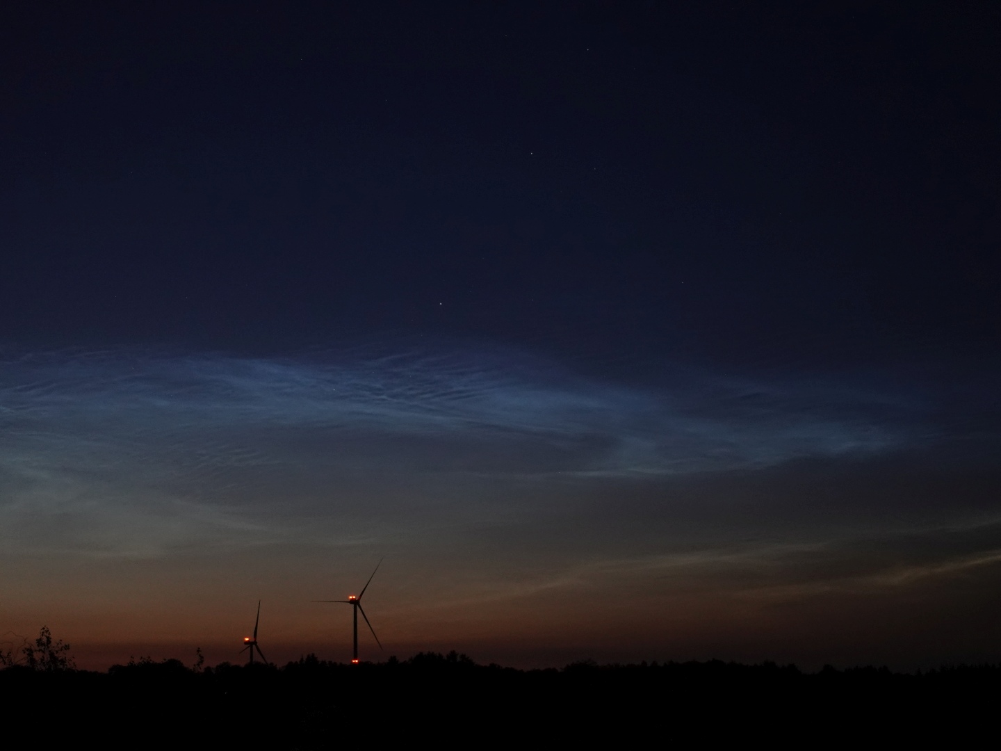 Gestern über der Nordeifel (50°39'N) schöne NLCs inkl. einiger Wellen, bis kurz nach Mitternacht zu verfolgen.
