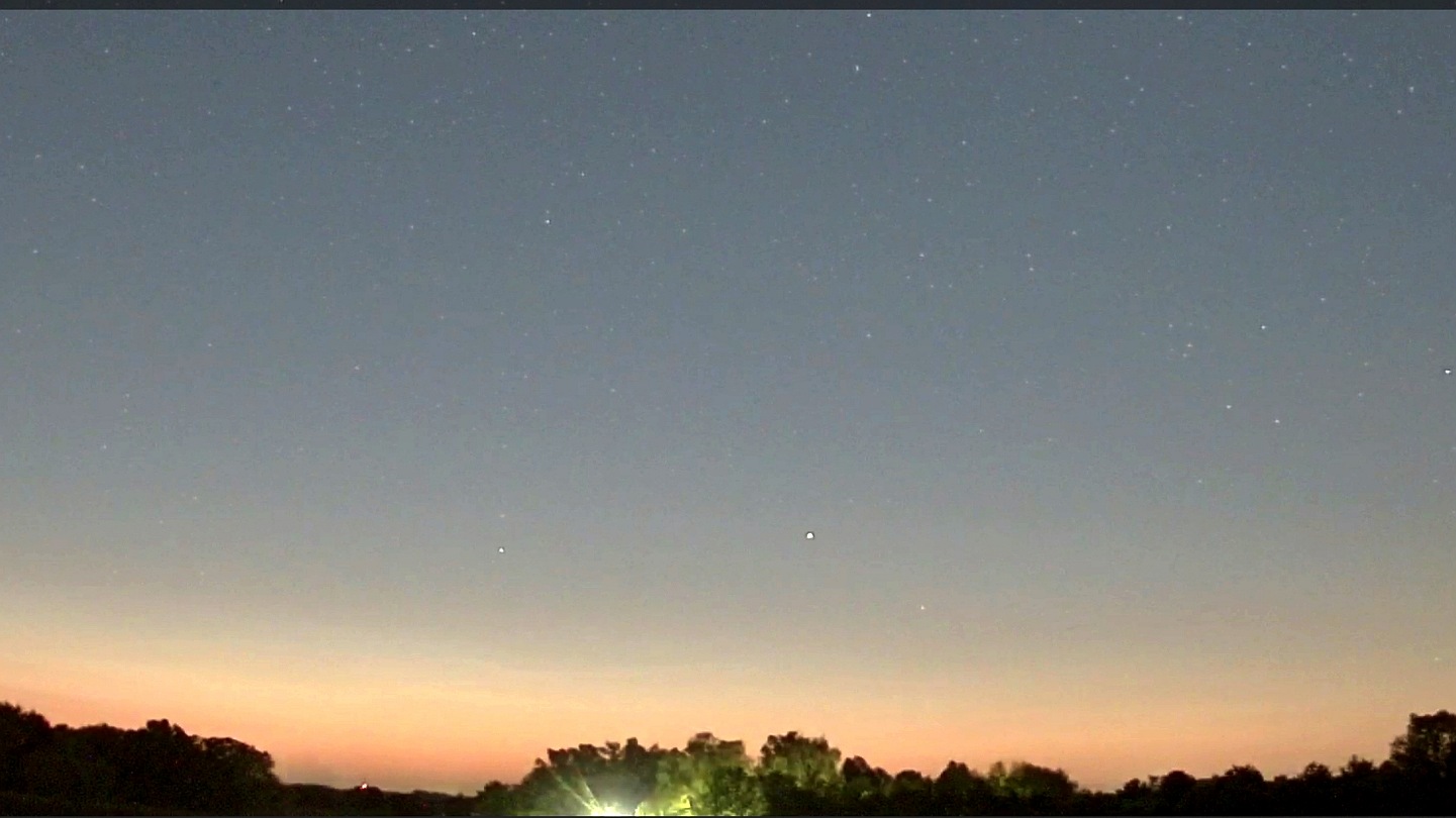 nachdem an diesem Abend Kontrasteffekte mehrfach verwirrt hatten, ist um 23:20 MESZ an der Cam in Gahlkow ein einzelner NLC-Streifen im Horizontdunst erkennbar geworden, der in der Folge nach Westen wanderte und um 00:10 MESZ am deutlichsten sichtbar war: