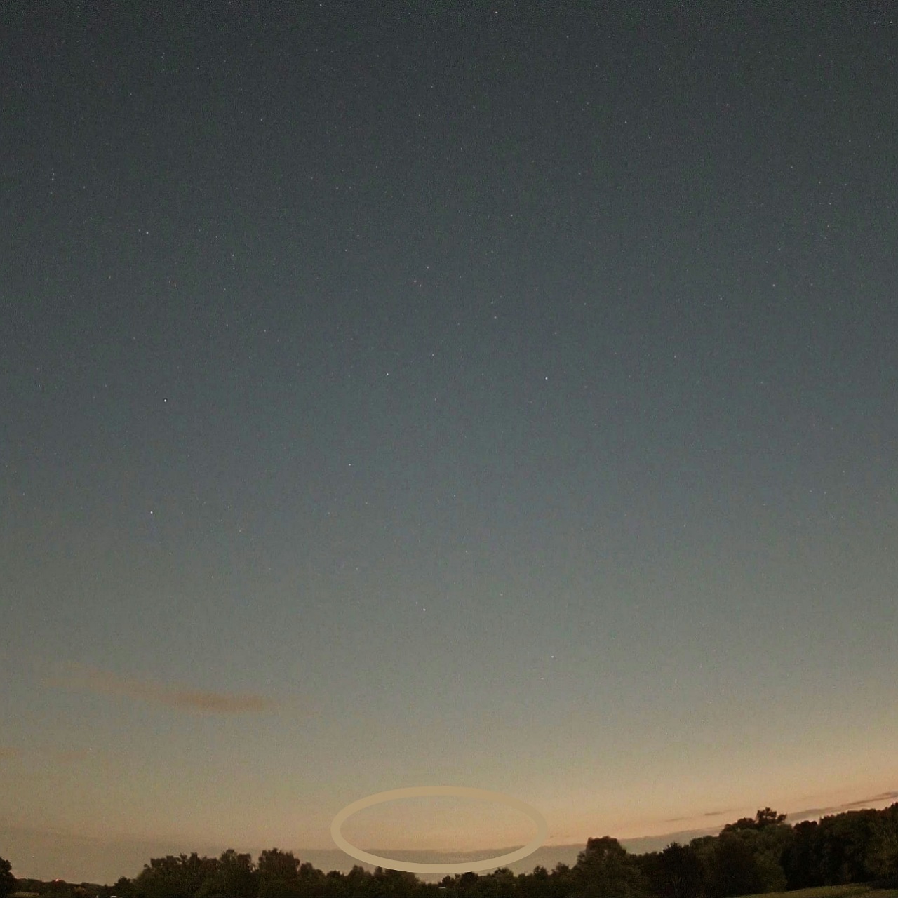 - NLC sicher ab 23:55 UT ganz tief und nur sehr schwach fotografisch um AZI 350 in 1° Höhe nachweisbar, das 2. Feld zeigt erste leichte Helligkeitsfluktuationen um ca. AZI 020 - 025 in 0,5° Höhe, bei vis. Kontrolle um 00:30 UT H1(-);