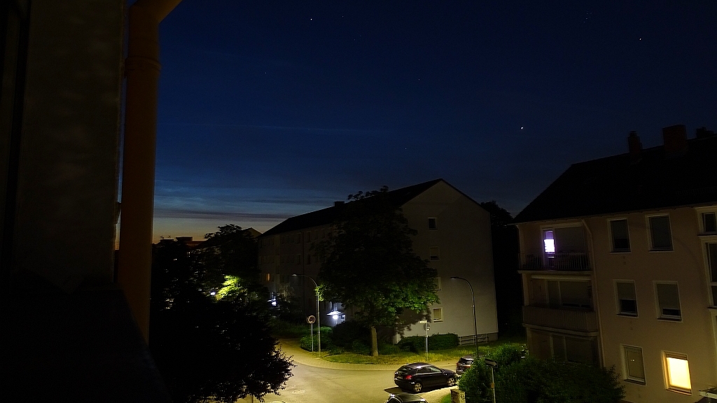 im Chat und auf Facebook werden NLCs von der Ostseeküste gemeldet. Die sind auch auf der Ettelsberg-Cam und (zumindest fotografisch) hier am Oberurseler Schlafzimmerfenster nachweisbar.