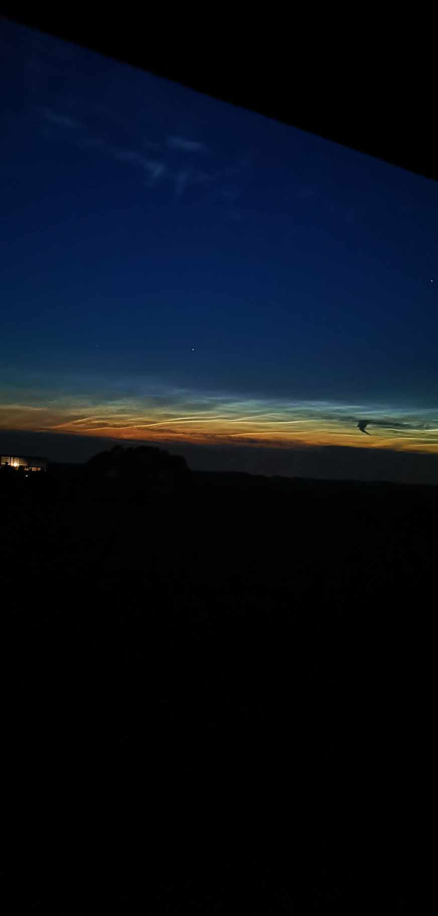 gestern zwischen ca. 23:30 und 00.00 Uhr MESZ haben wir hier auch NLC`s beobachten können. Aufnahme von ca. 23:35 Uhr mit Handy und verkleinert für Forum.