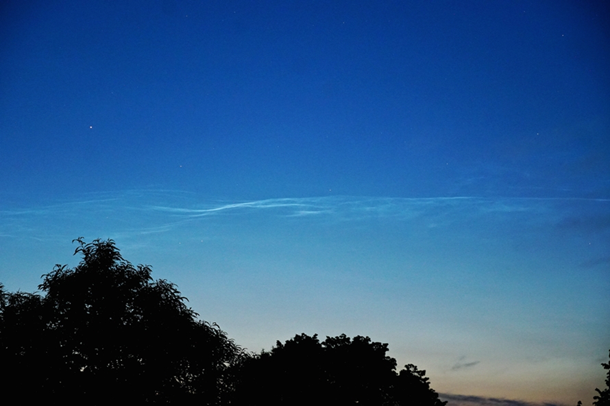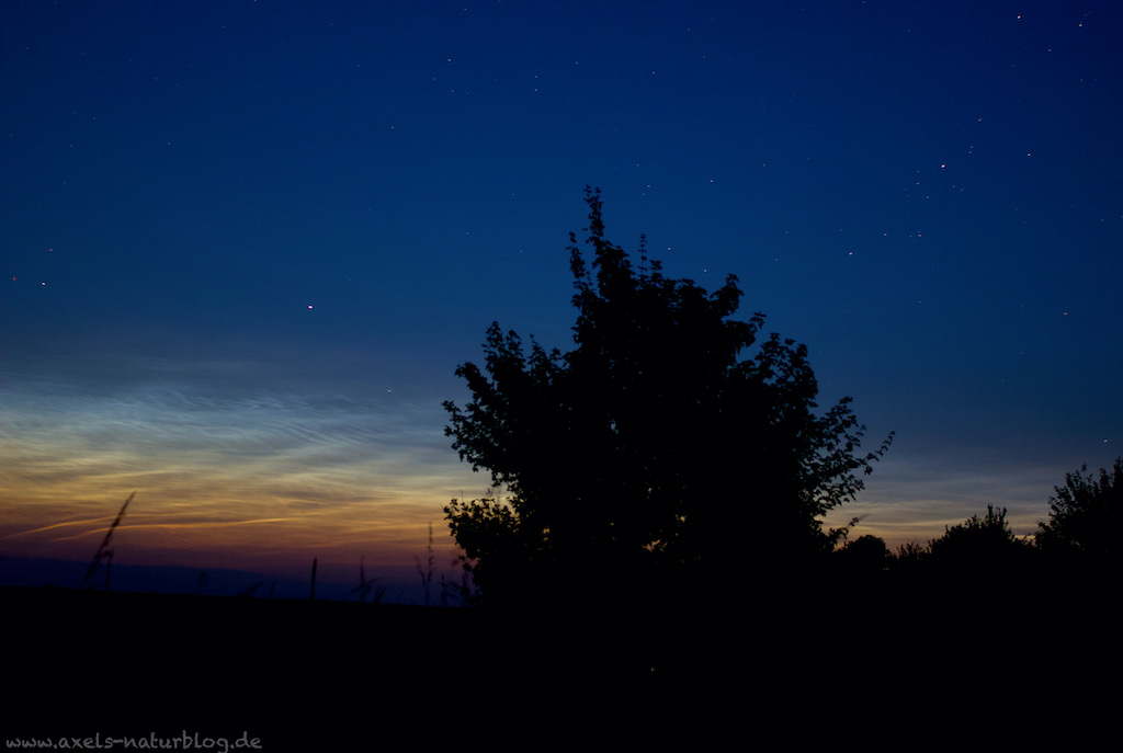 Meiner Ankündigung der folgenden morgendlichen Beobachtung folgte nicht viel: Mit der wieder höhersteigenden Sonne wurde keine weiteren NLCs mehr sichtbar. Horizontnahe Reste der NLCs verblassten sehr früh (ca. 02:06 MESZ), sehr schnell, so dass man sie meiner Meinung nach keinem "Morgendisplay" zuordnen kann. Letztlich ein klarer Fall von "Abendsektor > Morgensektor".