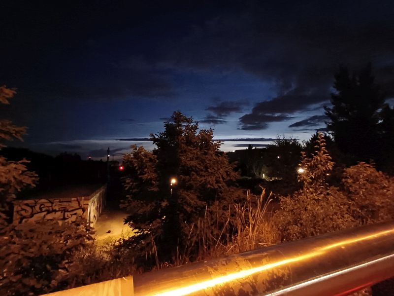 Um ca. 00:30 Uhr waren die NLCs dann deutlich dunkler und schwächer ausgeprägt. Dann zog es sich leider komplett zu. Die Wolken kann man im "Baumbild" links schon sehen.