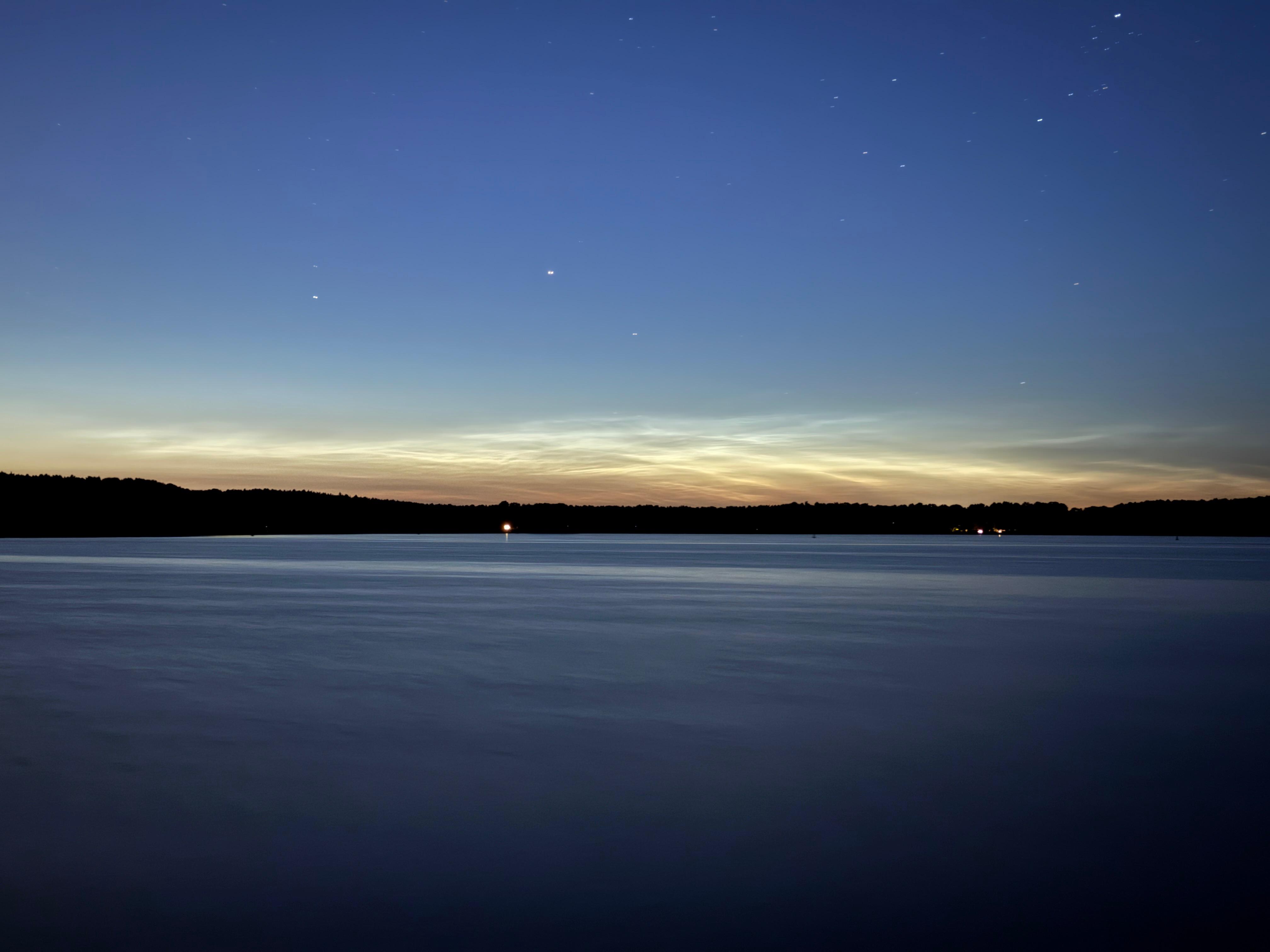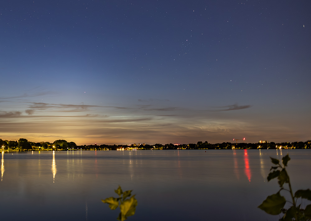 Zu Beginn dieser Nacht war ich mit dem Mountainbike im angrenzenden Torfmoor unterwegs und habe viele schöne Eindrücke sammeln können, während ich immer mal wieder zum Himmel schaute. Ohne mal zwischendurch aufs Smartphone zu schauen um zu prüfen, wie sich die Situation am Himmel global und hierzulande gestaltet, hätte ich diese NLCs wohl nicht bemerkt: