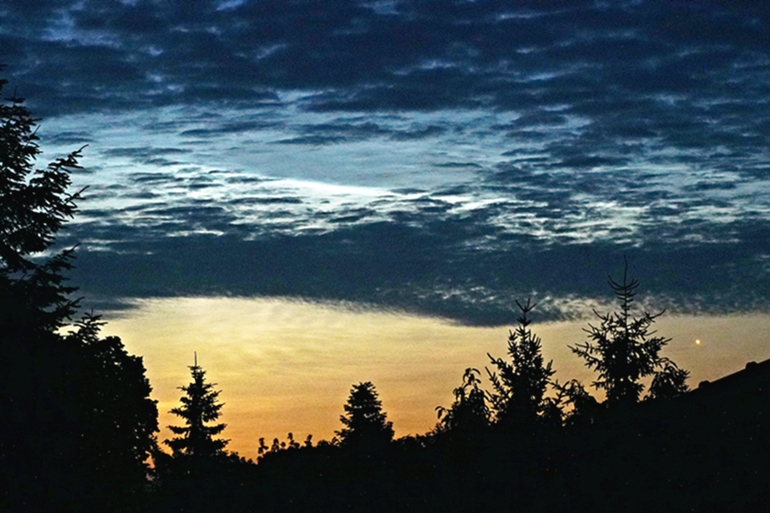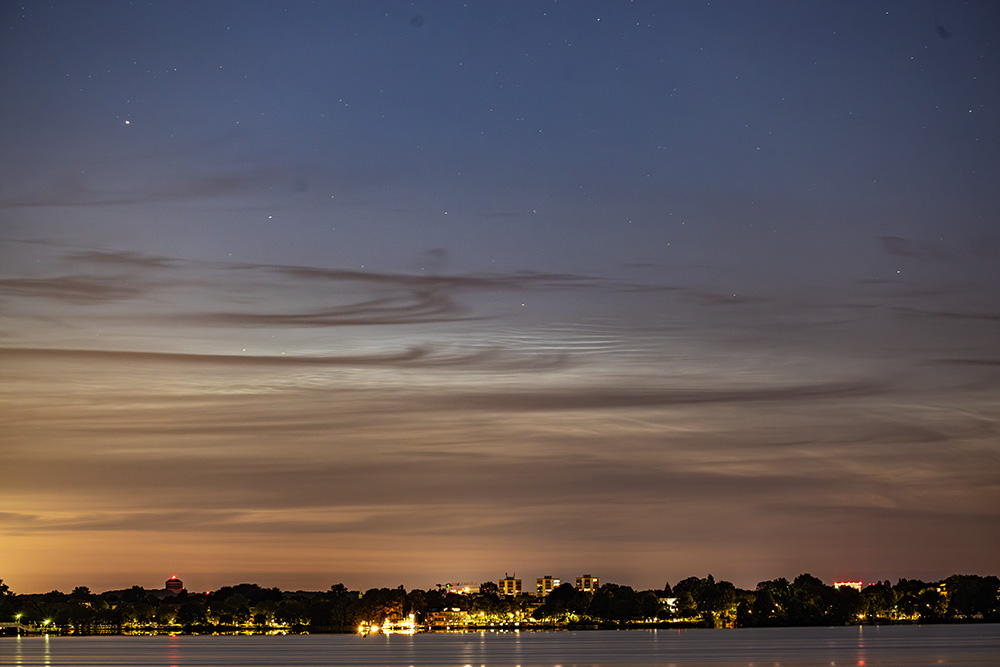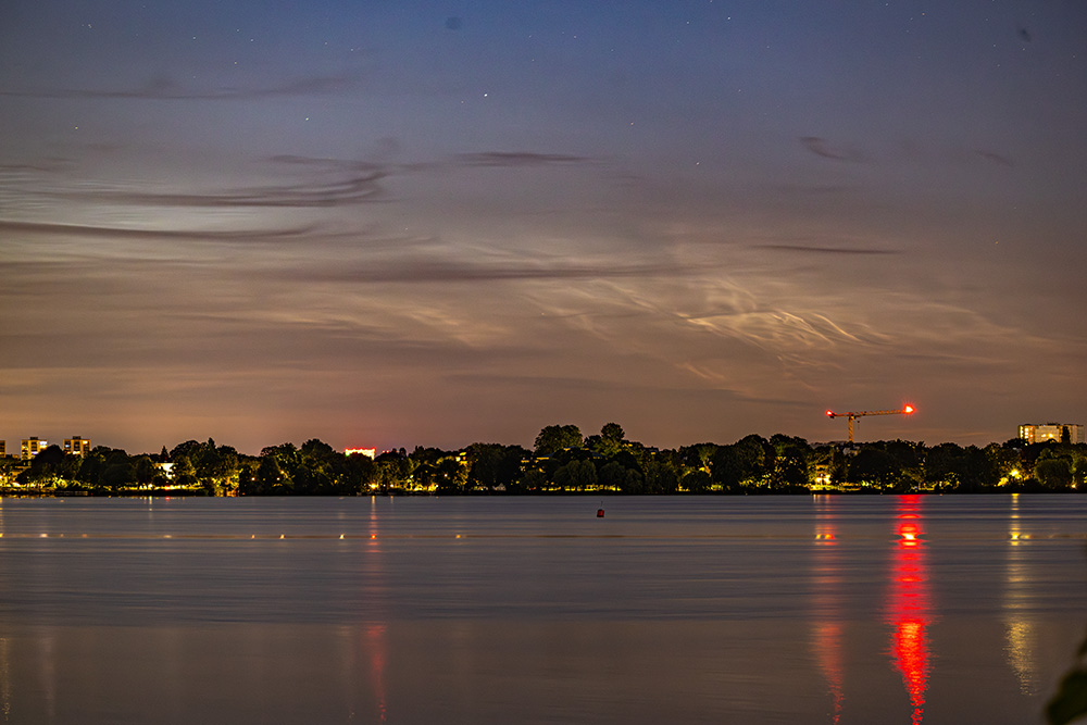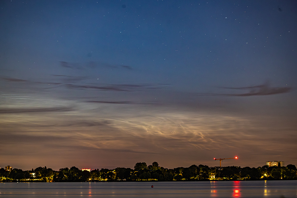 Hinweis: Fotografische NLCs im Abendsektor, Morgensektor 7/8-Bewölkung. NLCs im Abendsektor größtenteils am Rande der Nachweisgrenze. Zuvor im Tagesverlauf deutliche OSWIN-Echos und am Abend sehr späte OSWIN-Echos.