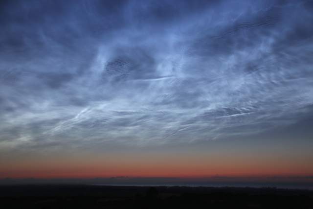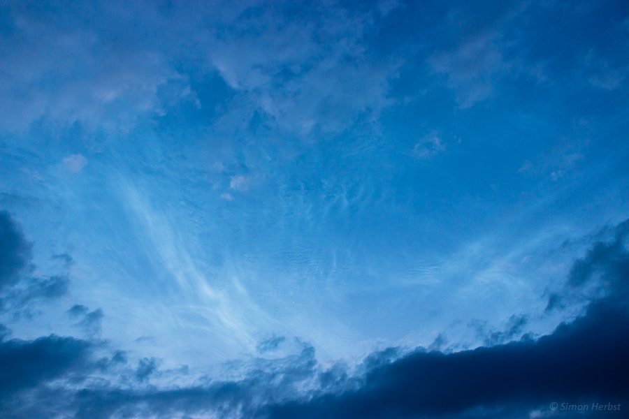 Recht schnell zogen dann aber die störenden Wolken ab und gaben den Blick auf das immer noch große Feld leuchtender Nachtwolken frei, so das mir erste schöne Bilder des großen Displays gelangen. Die Helligkeit ist aufgrund der teilweisen Verdeckung schwer zu beurteilen, aber ich würde es anfangs auf 4 schätzen.
