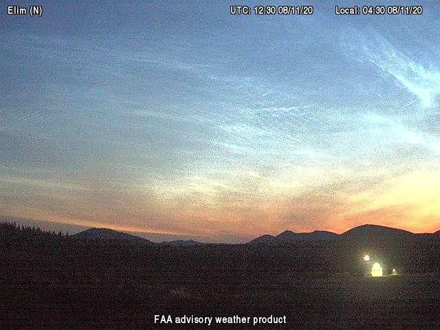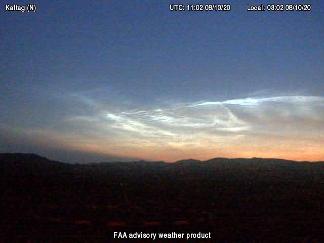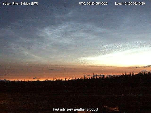 Nachtrag: In der vergangenen Nacht gab es auch wieder NLCs in weiten Teilen Alaskas, die sich über die FAA-Cams bis zum 59ten Grad nördlicher Breite nachweisen ließen. Die folgenden Aufnahmen stammen vom 61ten und 62ten Grad nördlicher Breite: