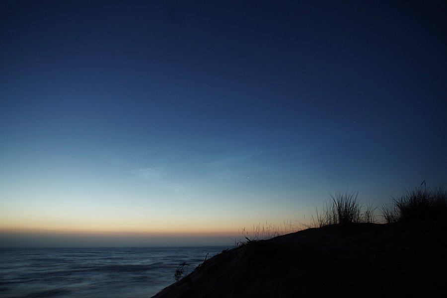 Das war ein sehr dynamisches NLC-Feld, das ziemlich flott nach Südwesten zog. Speziell gen Ende der Beobachtung änderte sich das Bild von Minute zu Minute daher ziemlich stark.