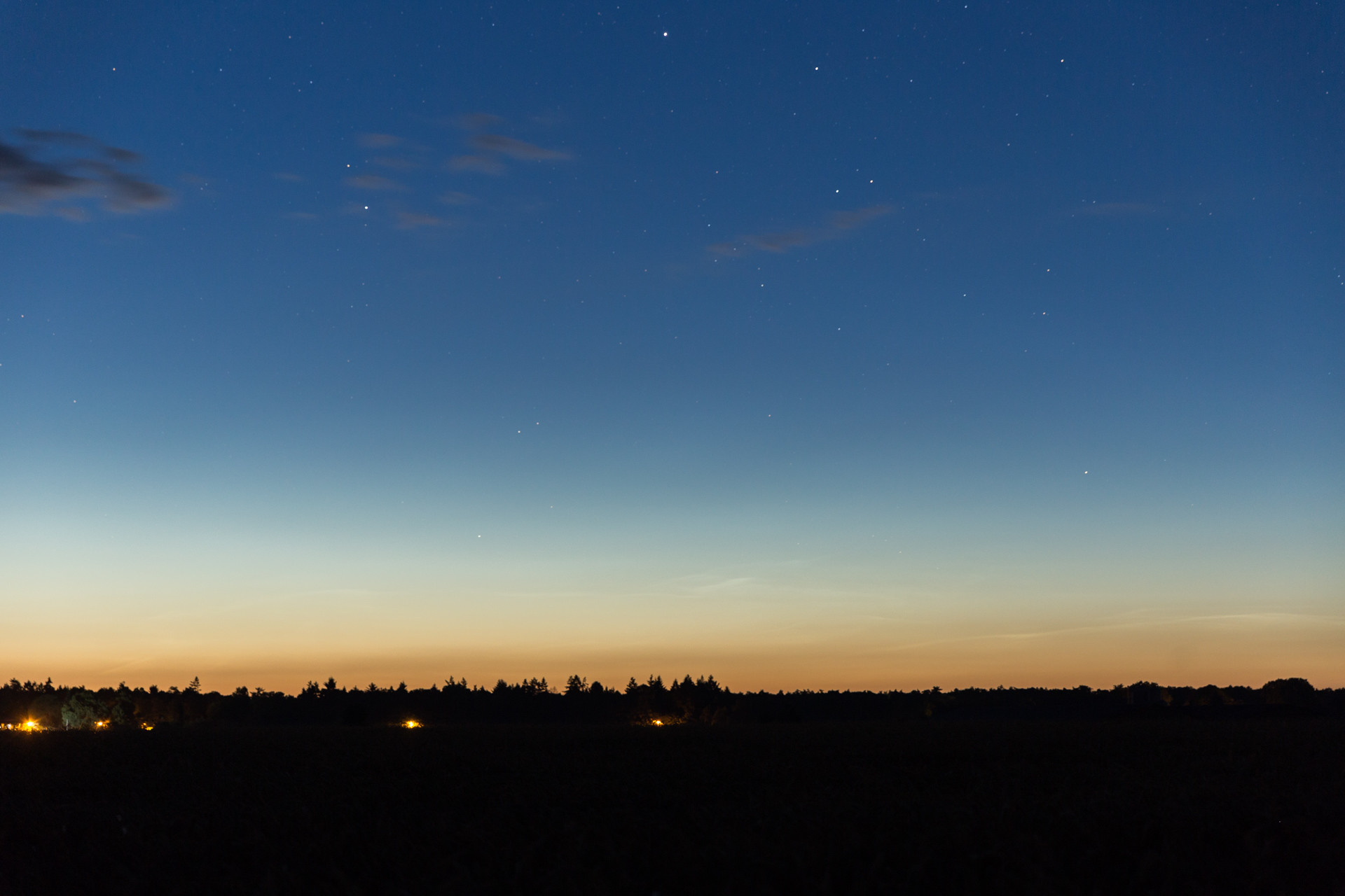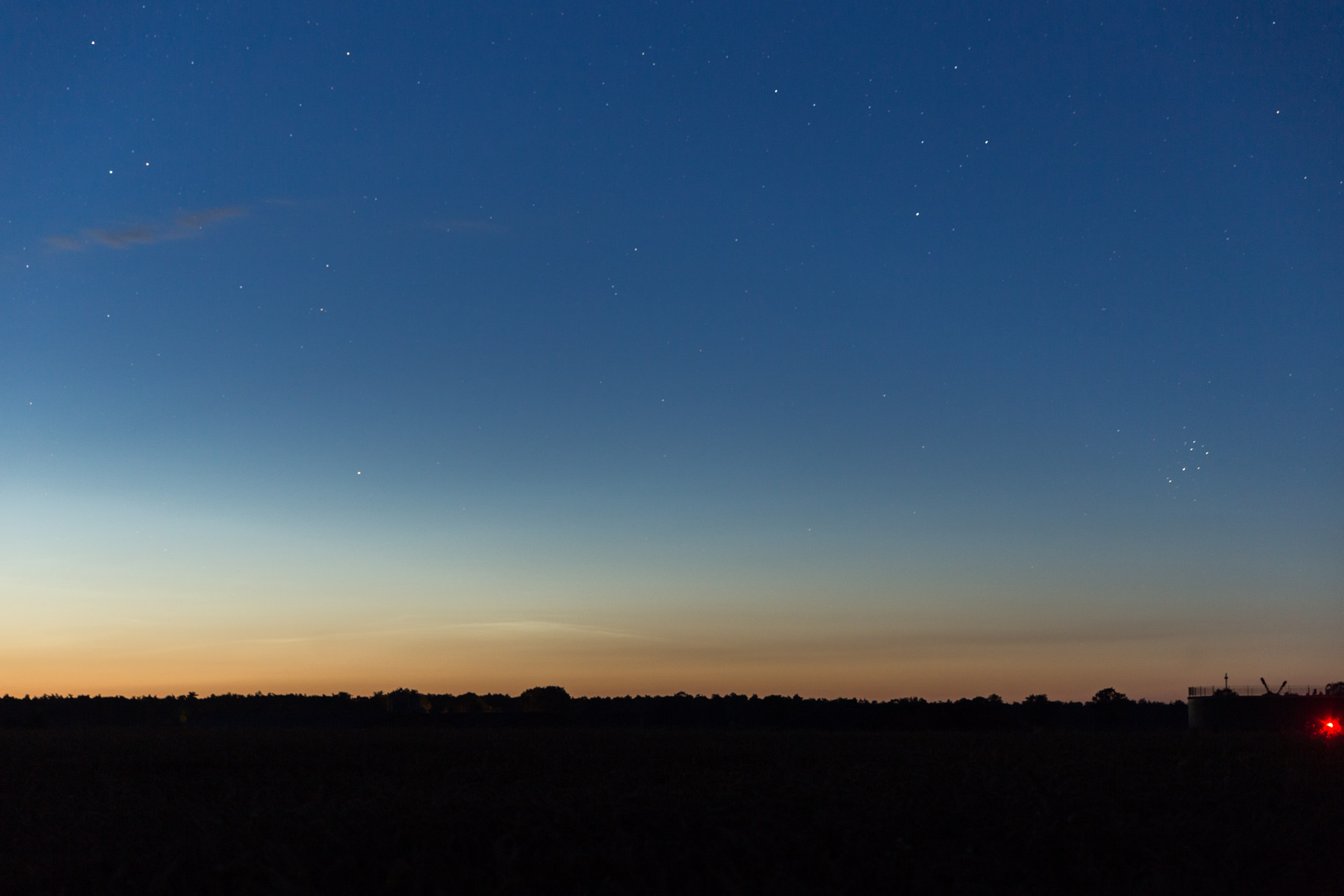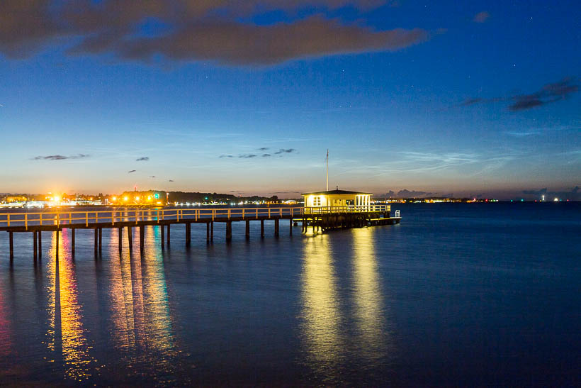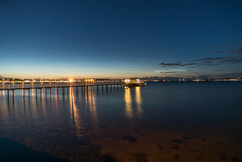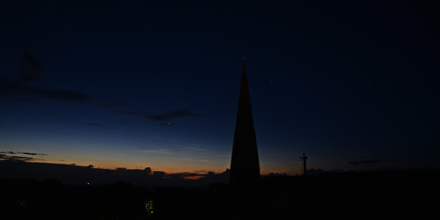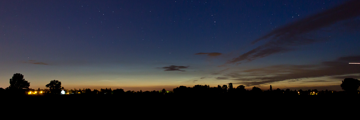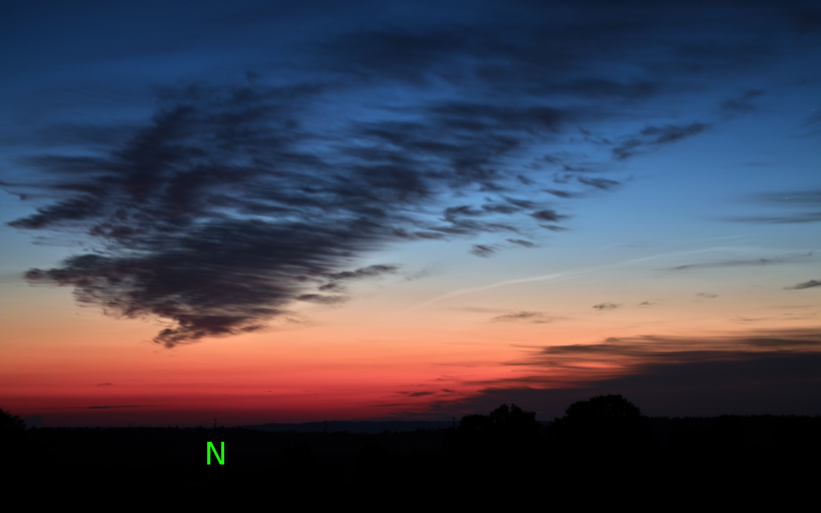 Ich habe heute gegen kurz nach Mitternacht (als das Hupkonzert losging :mrgreen:) ebenfalls schwache NLCs einfangen können. Leider war der Himmel nicht bis zum Horizont komplett wolkenlos und die Eisschirme der Gewitter über der Nordsee haben hier ein bisschen die Sicht verdeckt.