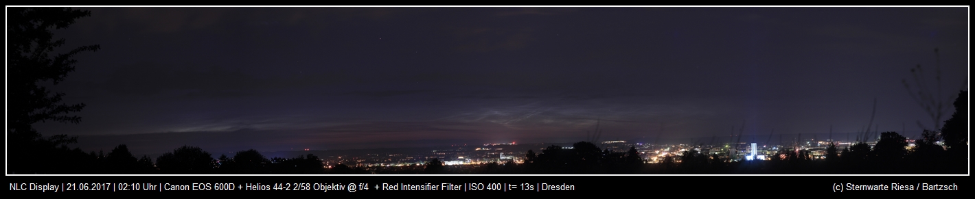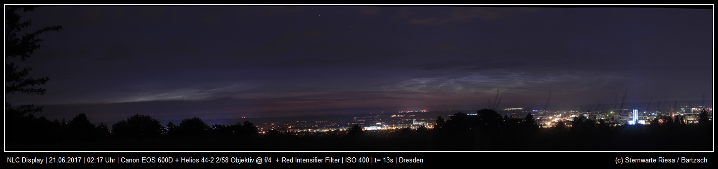 Vornacht traten die NLCs am 20./21.06.2017 bereits vor Mitternacht in Erscheinung, sodass viele Beobachter am Ball blieben. Die Meldungen, welche mit einer Ausnahme alle nördlich des 51. Breitengrades erfolgten (Abb. 1, auch als