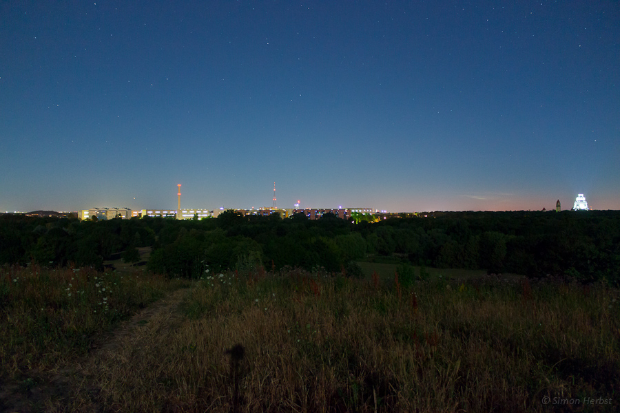 (gaanz knapp über den hintersten Häusern, bisschen links von der Bildmitte und wirklich kaum zu sehen)