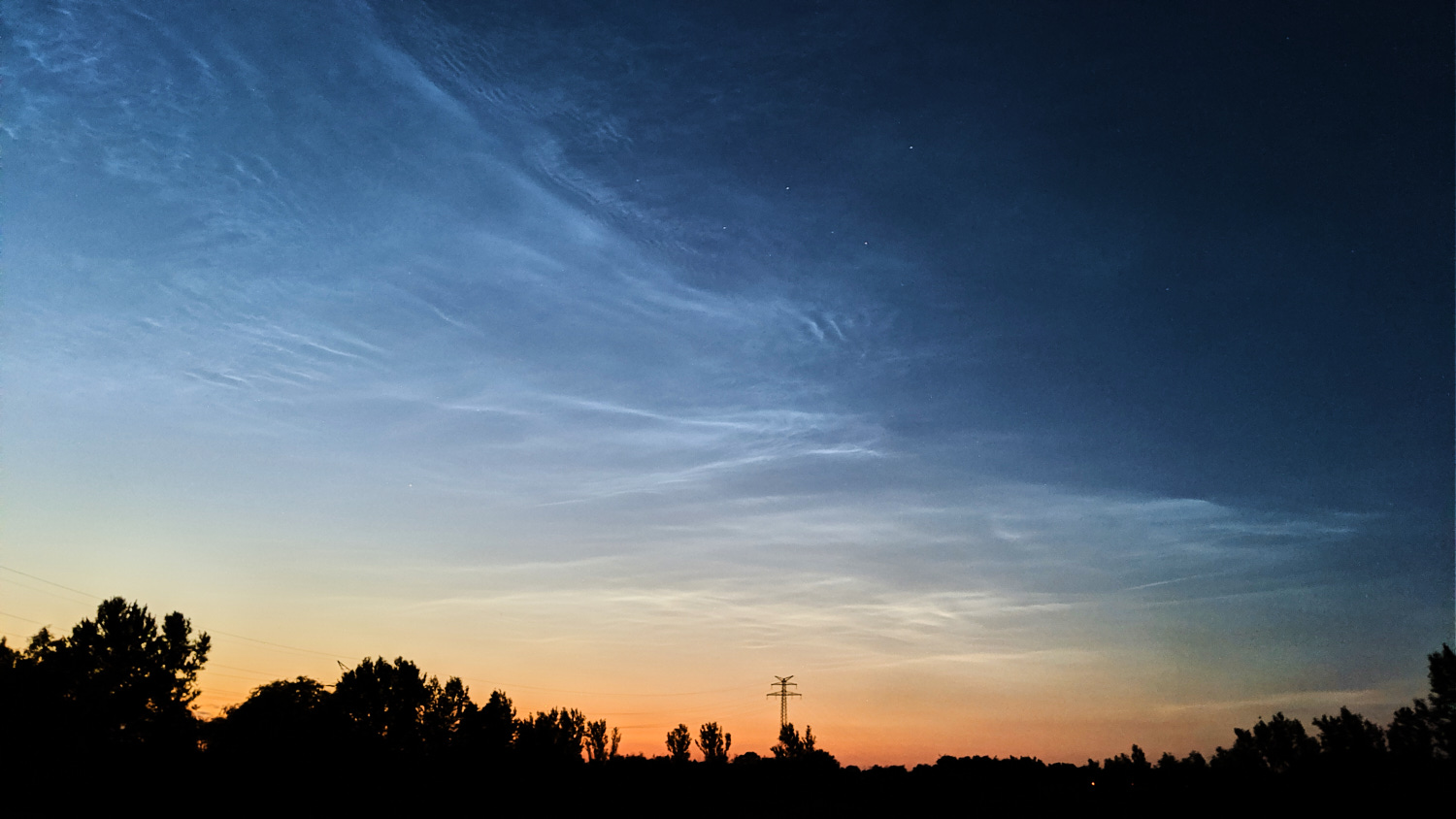 Kurzer Report aus Osnabrück. Schon beeindruckend, dass man Richtung Südosten zum Mond und Jupiter schauen musste, um die ersten NLCs in der Dämmerung sehen zu können. Spätere Uhrzeit Richtung Norden war die Show ganz nett, hätte mir aber mehr versprochen. Für das jährliche obligatorische NLC-Selfie hatte es aber doch gereicht...