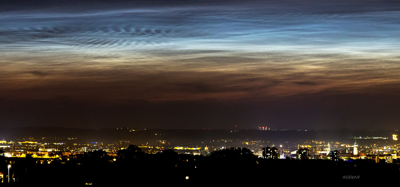 während im Elbtal, im Dresdner Osten die NLC gegen 23.30MESZ nur knapp über den Horizont kamen, sah es nach Mitternacht in Babisnau mit Blick über die Stadt schon gewaltig aus.