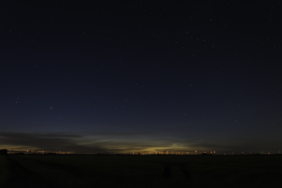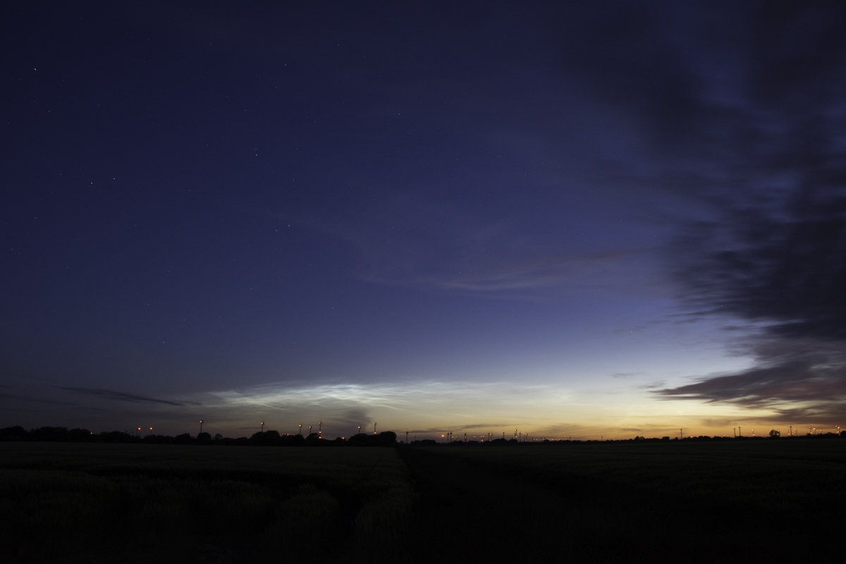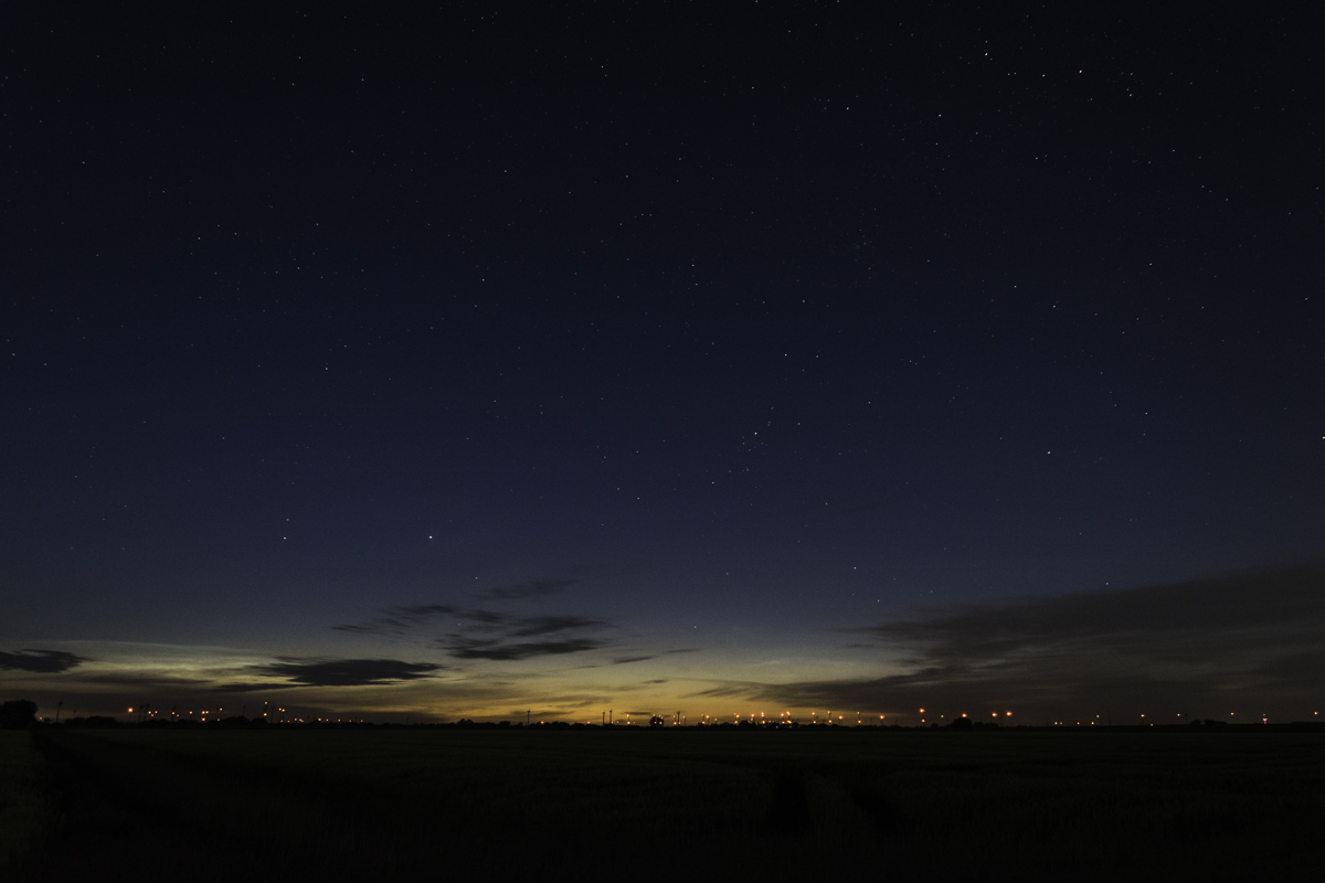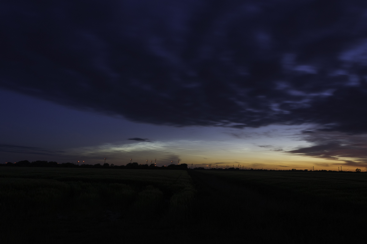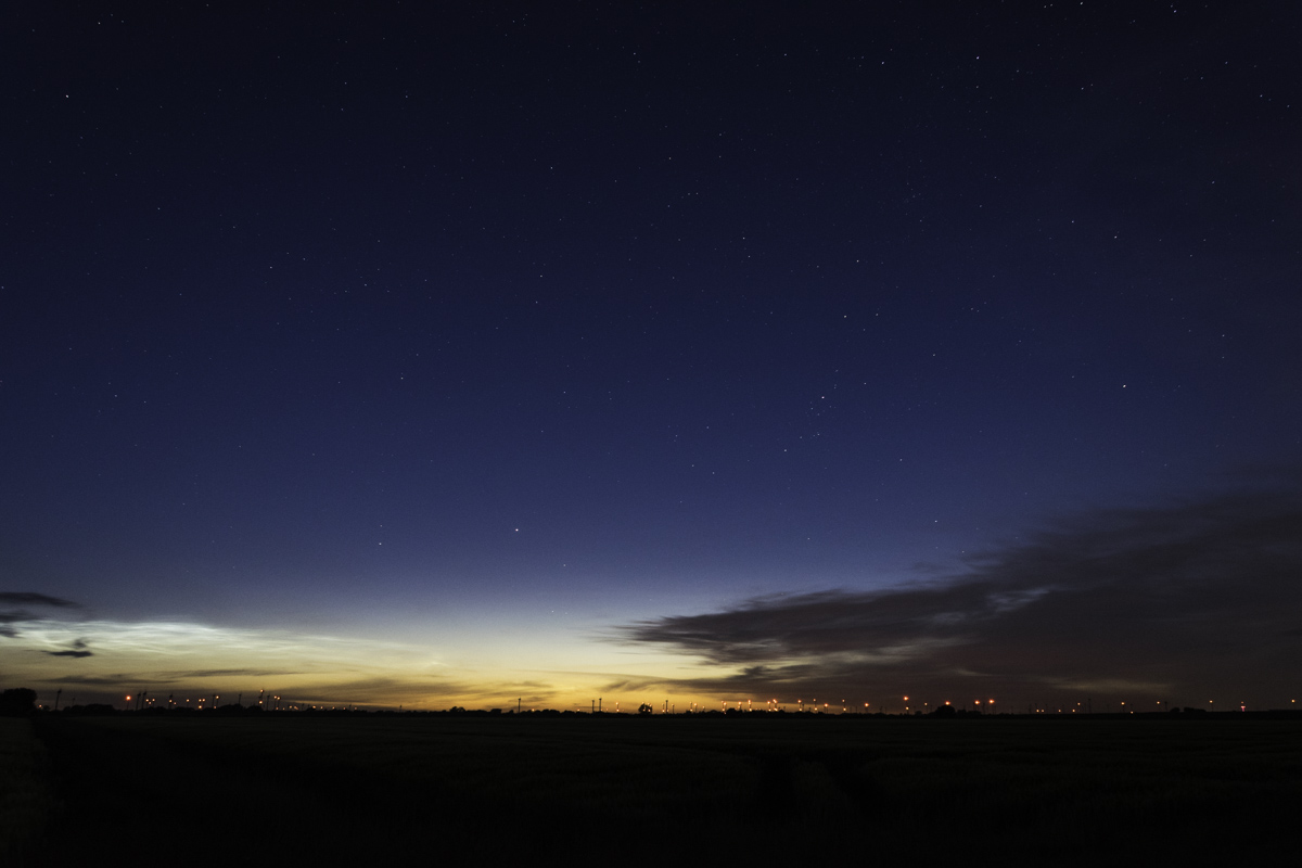 Beim Eintreffen war im NO ein deutlich aufgehellter goldener Horizont zu sehen ohne aber direkt die NLC zu sehen.