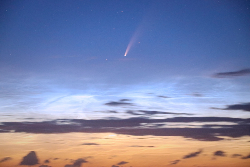 Klarste Sichverhältnisse, NLC+ Neowise, eine unbeschreibliche Nacht an der Steilküste Hubertsberg. Was NLC+Kometen-Bilder betrifft, so halte ich es mit Thorsten: Grossartige Bilder, da kann ich mit meinem Equipment nicht mithalten...für mich aber so ok