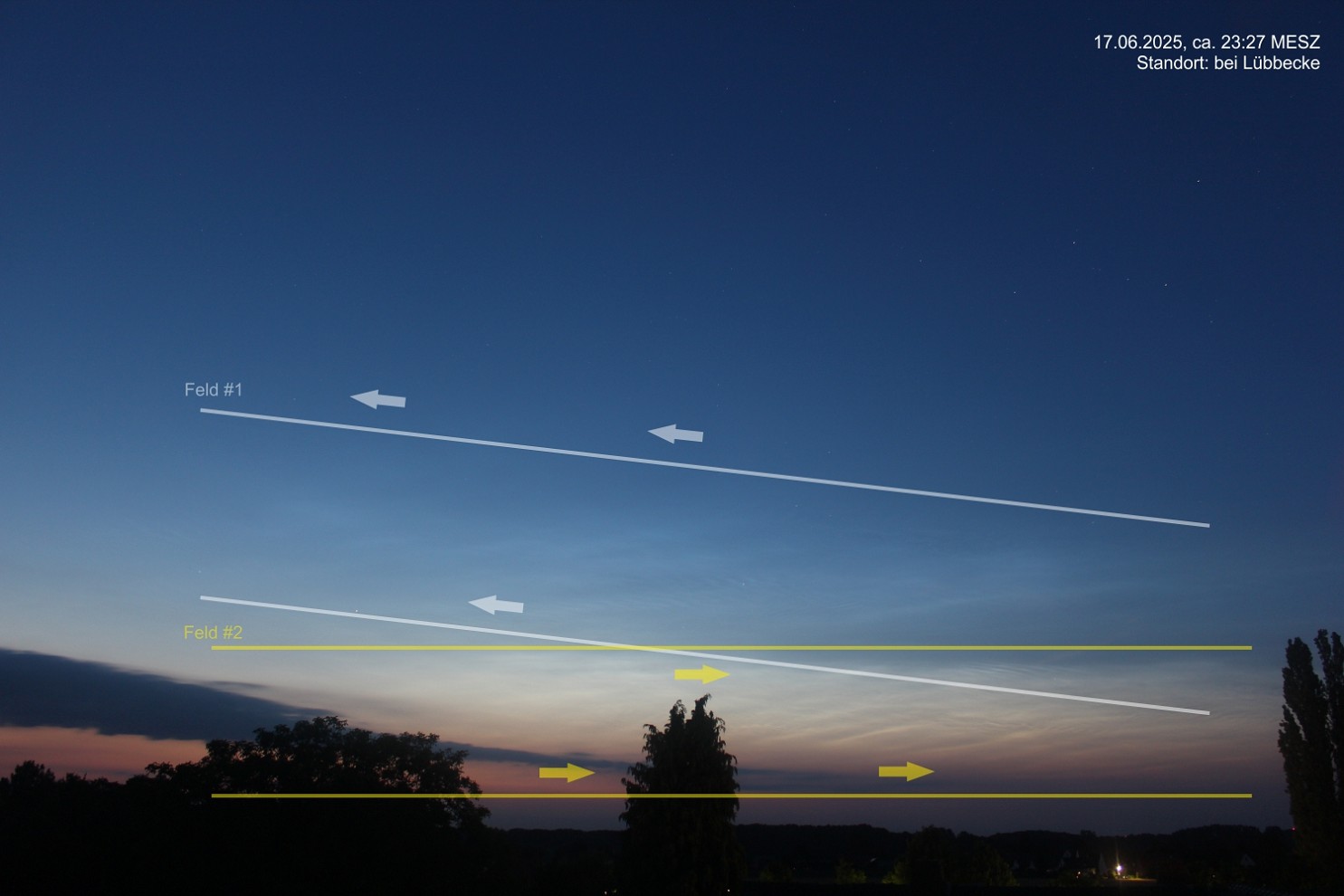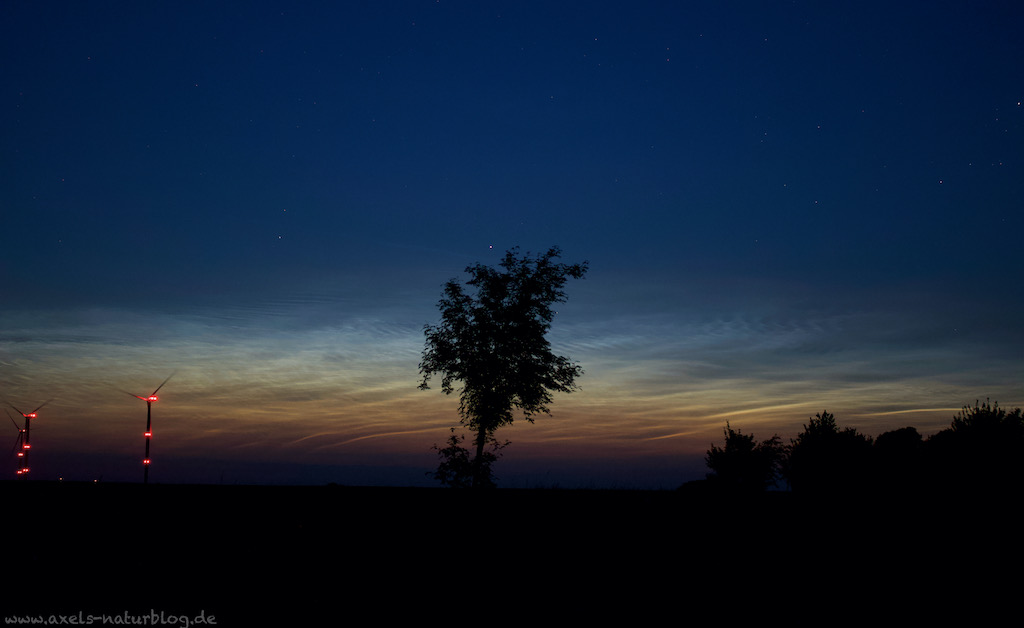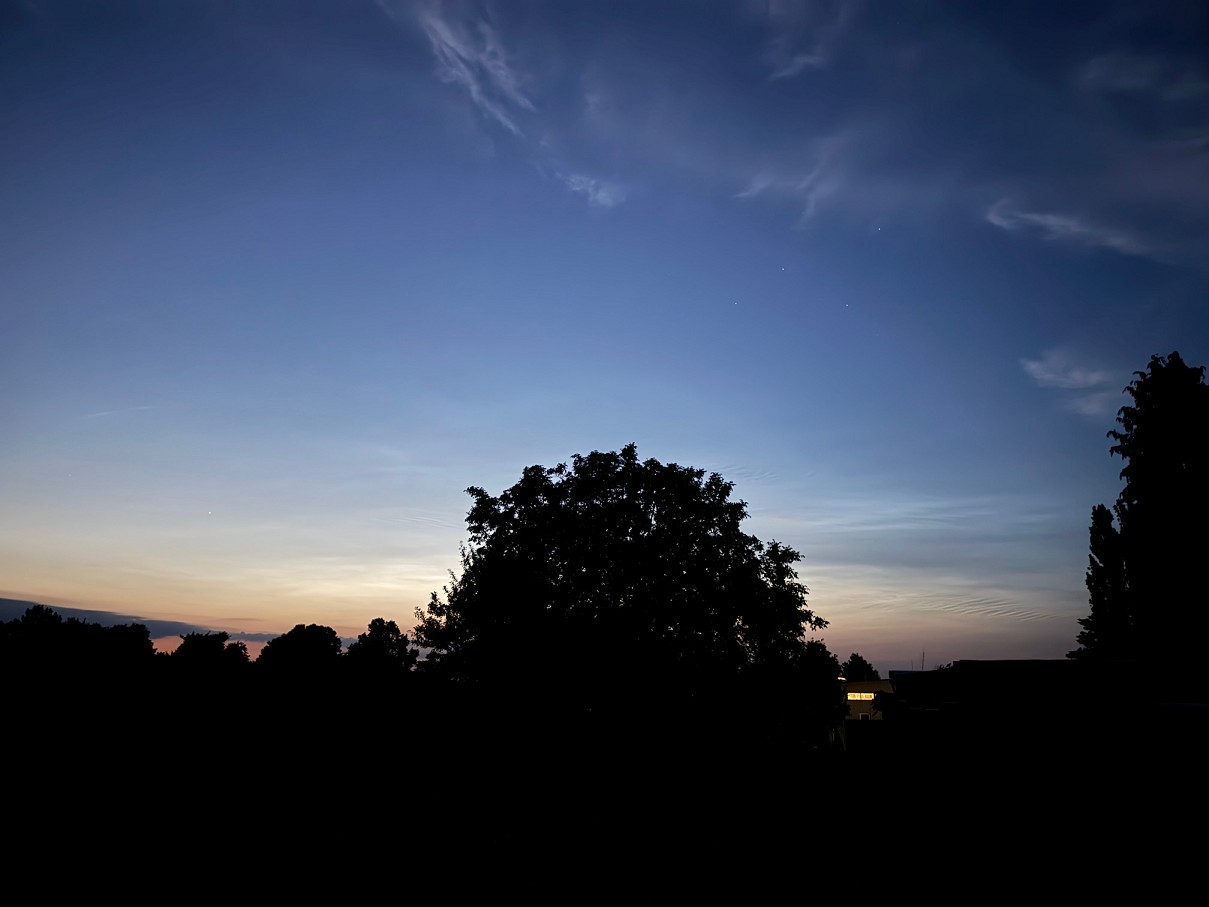Meiner Ankündigung der folgenden morgendlichen Beobachtung folgte nicht viel: Mit der wieder höhersteigenden Sonne wurde keine weiteren NLCs mehr sichtbar. Horizontnahe Reste der NLCs verblassten sehr früh (ca. 02:06 MESZ), sehr schnell, so dass man sie meiner Meinung nach keinem "Morgendisplay" zuordnen kann. Letztlich ein klarer Fall von "Abendsektor > Morgensektor".