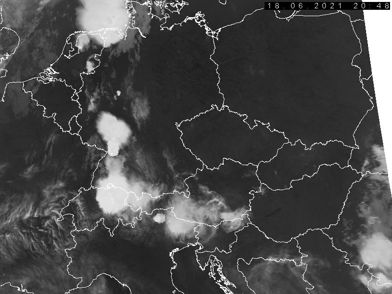 der Abendsektor der Nacht 18./19.06.2021 brachte die bis zu diesem Zeitpunkt eindrucksvollsten NLCs der Saison. Sie waren in weiten Teilen Europas zwischen 45° und 60°N sichtbar und dementsprechend auch, sofern die Bewölkungsverhältnisse (Abb. 2) mitspielten, in der gesamten D/A/CH-Region, wie zahlreiche Meldungen in den Social Media dokumentieren.