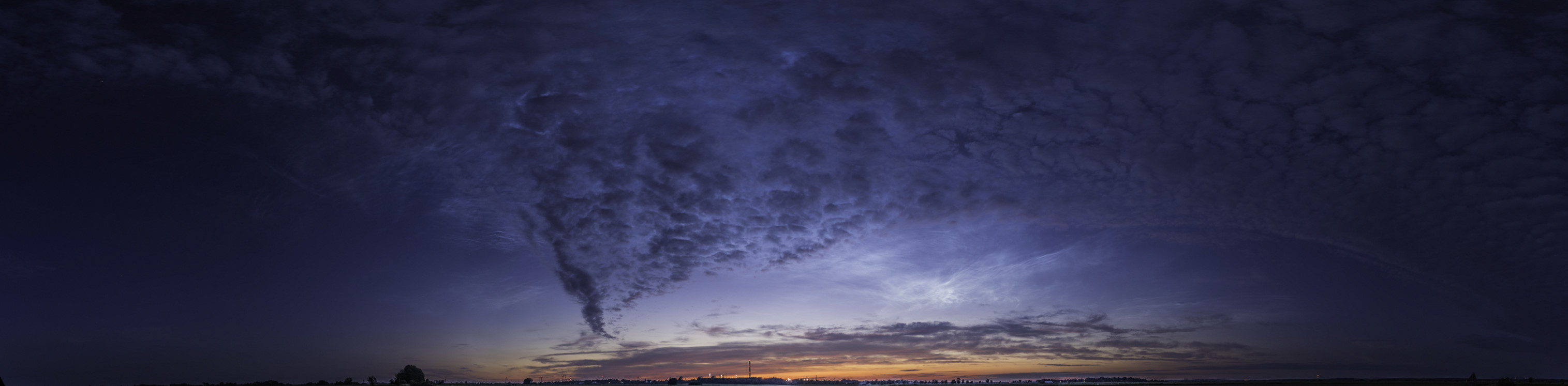 - 16.06.2020, 22:57 MESZ - Sonnenstand bei -7,8° - Helligkeit 4 - Standort: bei Sachsenhagen (180°-Panorama: 13 Hochformat-Aufnahmen @ 24mm, Kleinbild)