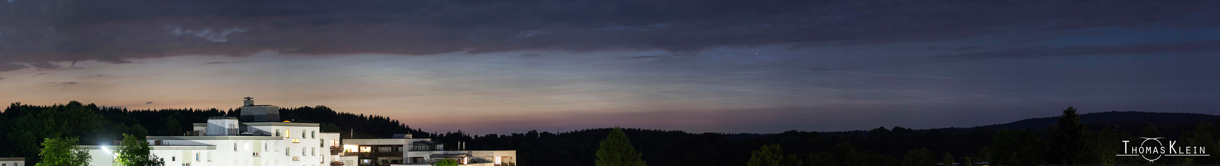 Hier in Burgkunstadt hab ich die ersten sehr diffusen Bänder gegen 22:15 erahnen können. Da war ich mir sofort sicher das es sich hierbei nur um NLC handeln kann. Auf meinem Beobachtungspunkt angekommen zeigten sich Bänder relativ großflächig von West nach Ost. Ich hatte deshalb an ein größeres NLC-Event gedacht aber nach dem die Bänder verblassten war nur noch im Norden kurzzeitige ein kleineres helleres NLC-Feld zu sehen. Sehenswert aber nicht gerade überwältigend. Um 23:13 verschwanden die letzten Reste.