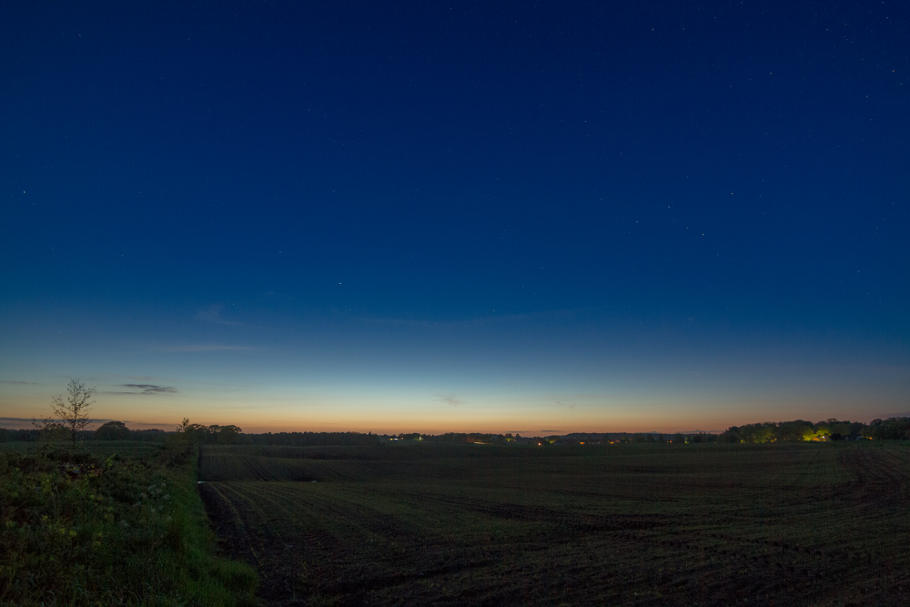 Ich habe ein Bild von 23:29 Uhr etwa nach NNW, wo man einen kleinen Fetzen sieht und da wird auch wieder das Problem deutlich, dass ab einer gewissen Höhe auch Zirren das Restlicht so streuen können, dass sie vor dem dunkleren Himmel ein wenig wie NLCs ausschauen. Weiter Richtung Horizont kehrt sich das um und sie wirken dunkler als der Himmel.. Bei NLCs wären auch höchstwahrscheinlich mehr Detailstrukturen erkennbar, meistens sehen die schon etwas anders aus, als "normale" Wolken.