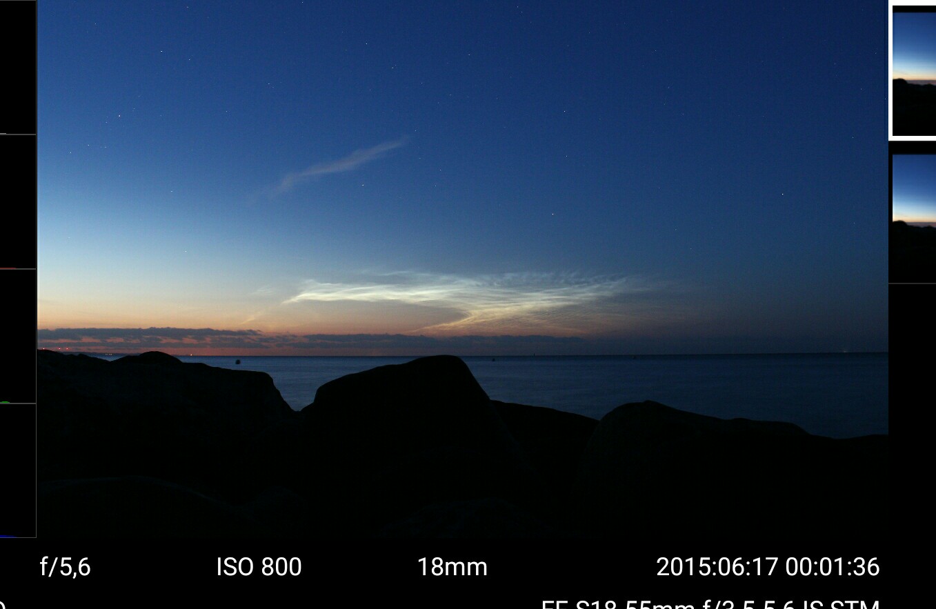 hier sind die NLC ganz tief im Nordosten zu sehen, vielleicht bis 2° hoch.