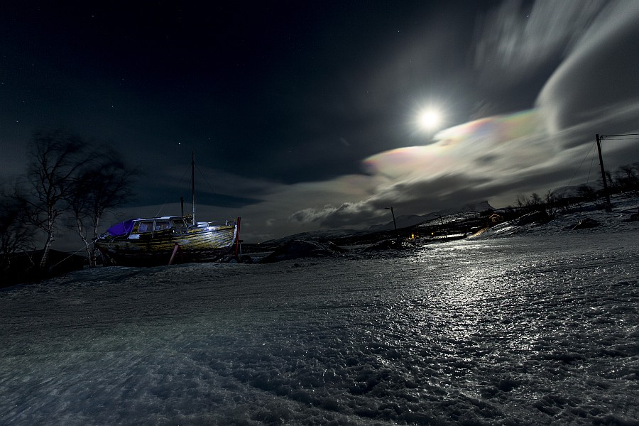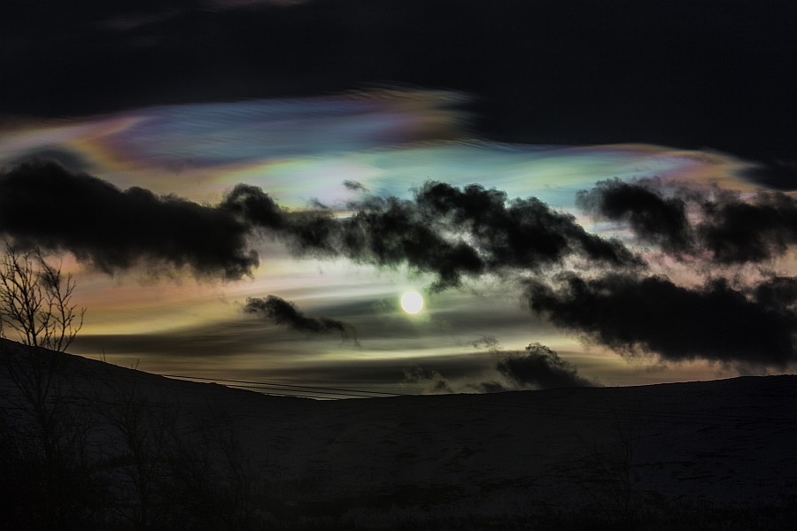 Ich habe das Bild heruntergeladen und mit Gratadionskurve und Anhebung der Farbsättigung bearbeitet. Die Wolke im linken Bildrand zeigt dabei deutliches Irisieren!