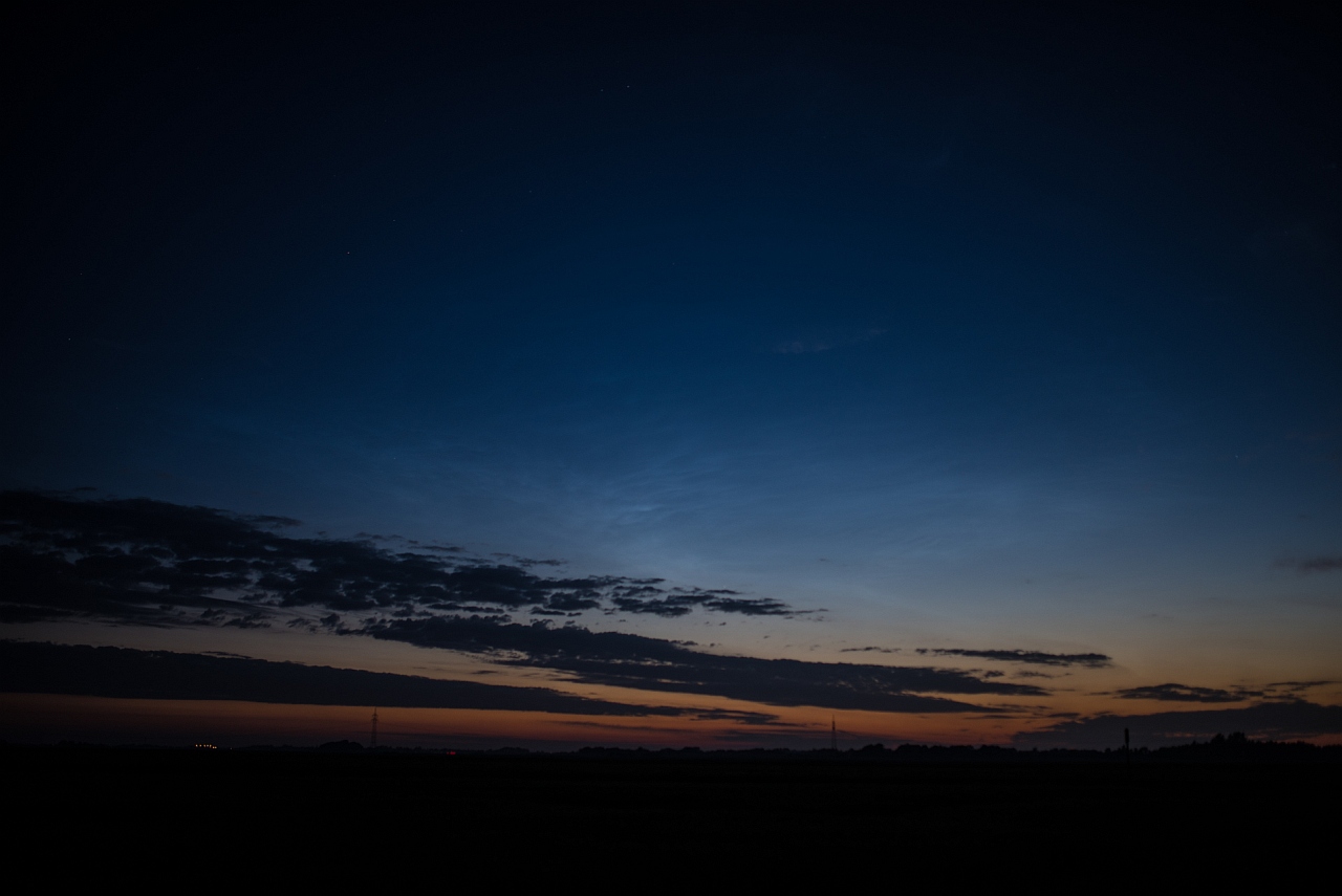 Die NLC blieben bis etwa 1:50 MESZ sichtbar, dann zogen Wolken mit Regen herein, und ich brach die Beobachtung ab.