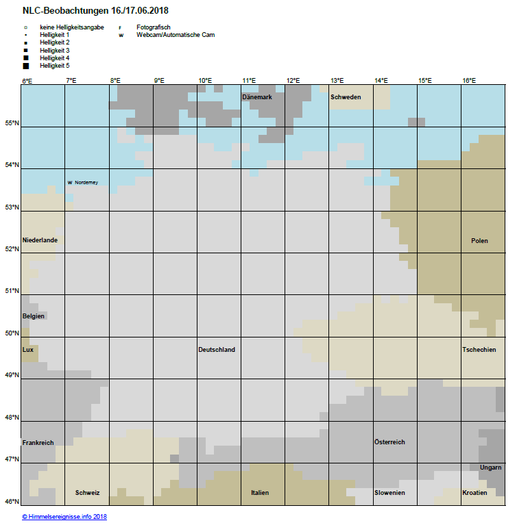 - Abb. 1: NLC-Beobachtungen in der Nacht 16./17.06.2018