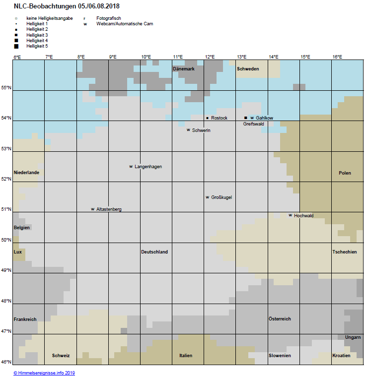Abb. 1: NLC-Beobachtungen in der Nacht 05./06.08.2018
