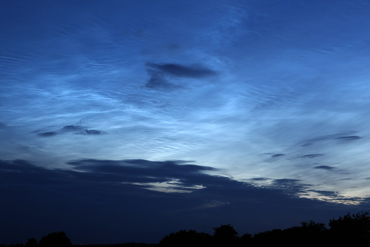 Eigentlich wollte ich dann schon heim fahren, weil die Wolken ja bald den Horizont im Osten erreicht hatten. Aber zugleich sah ich über mir, wie die Wolken sich ein wenig aufzulösen begannen. Ich war also unsicher und beschloss, noch ein wenig da zu bleiben und weiter zu schauen und mir die Zeit mit Fotos zu vertreiben. Zudem war trotz der Wolken bei den NLC noch einiges geboten.