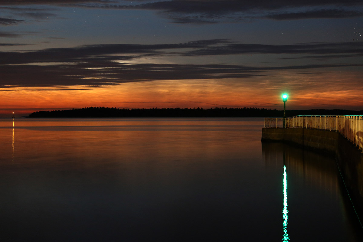 Danach wurden die Sichtbedingungen durch die von Westen aufziehenden Wolken immer schlechter, so das ich beschloss, noch weiter nach Greifswald Wieck und dort zur Nordmole zu fahren. Natürlich konnte ich unterwegs dem einen oder anderen Motiv nicht widerstehen, noch waren die leuchtenden Nachtwolken ja nicht komplett verdeckt.
