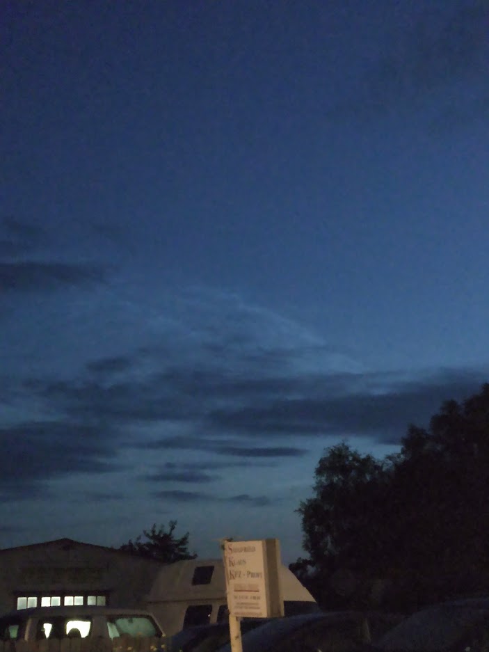 Komisch war, dass es nur ein größerer Bereich war, der dann später auch recht hoch ging (ich vermute so 40°). Mich hat das ganze ein bisschen an die NLC erinnert, die man manchmal durch Raketenstarts sehen kann. Gab's da vielleicht welche?