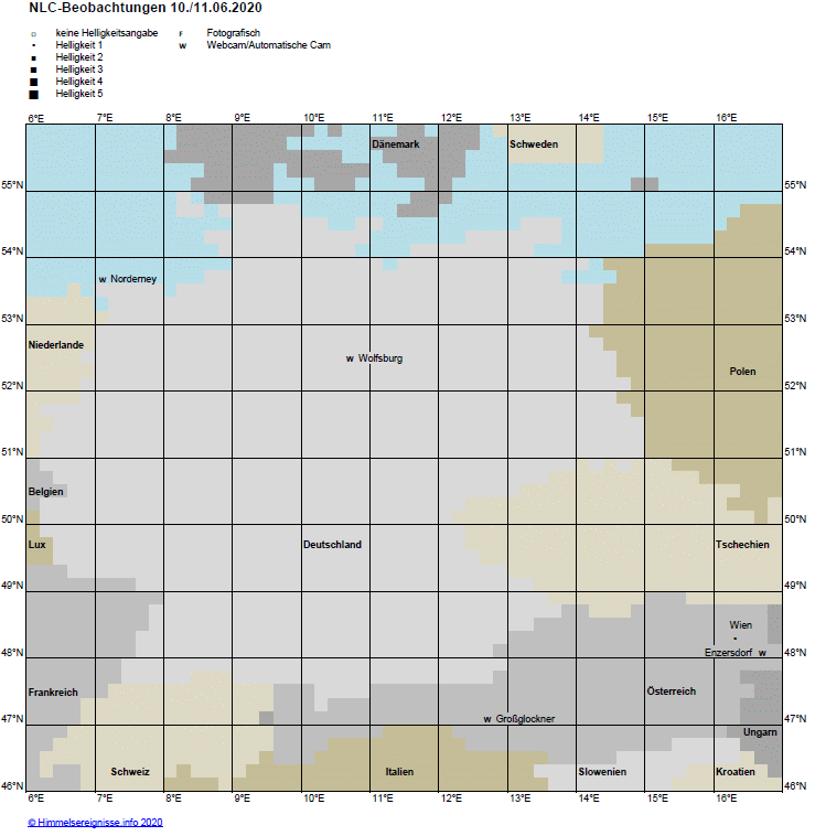 NLCs waren in der Nacht 10./11.06.2020 in weiten Teilen Europas sichtbar.