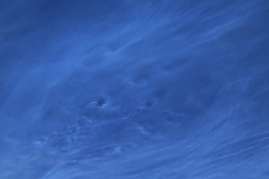 Hier in Hamburg durch ein paar kleine Wolkenlücken auch NLC bis zum Zenit, sehr hell. Schade, bei freiem Himmel wäre das ein super Schauspiel