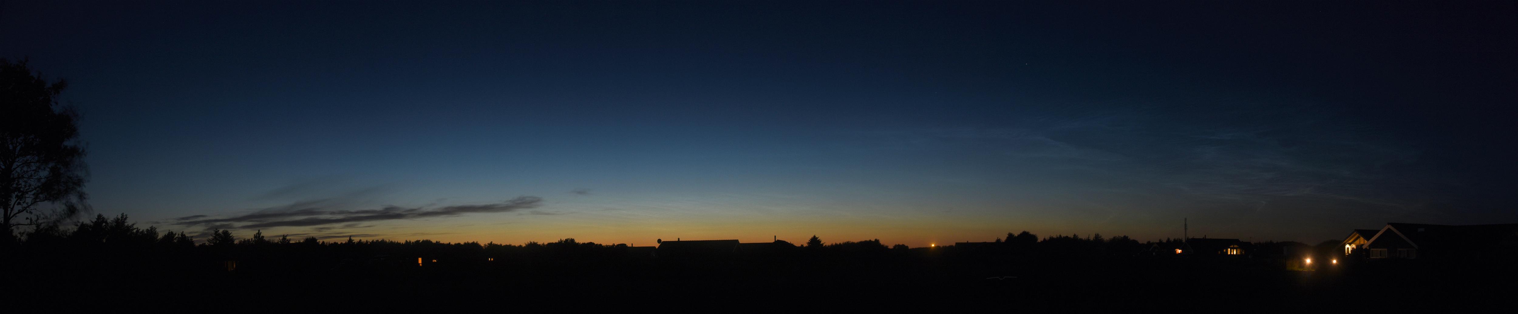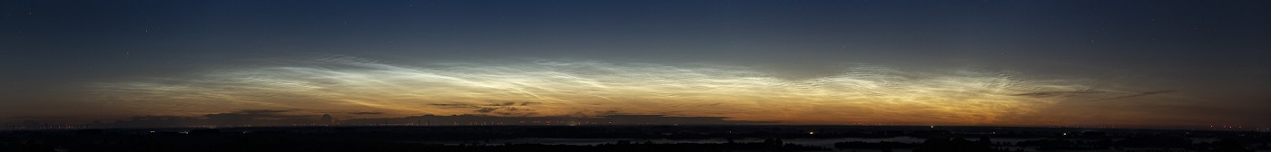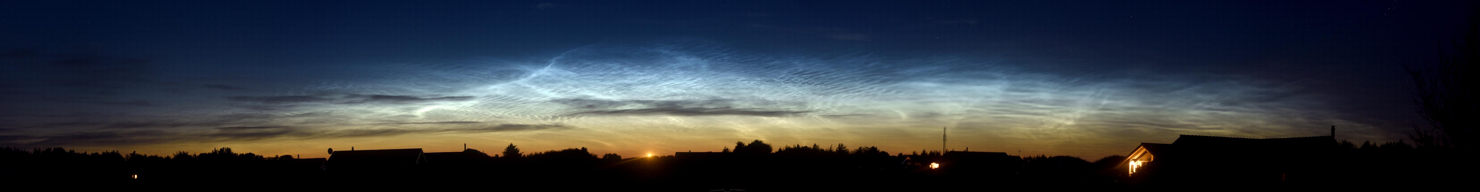 In Dänemark entwickelten sich die NLCs dann doch recht prächtig. Um 1:30 Uhr sah das Display, das sich azimutal deutlich von 340° bis 60° erstreckte und eine Höhe bis 10° erreichte, so aus: