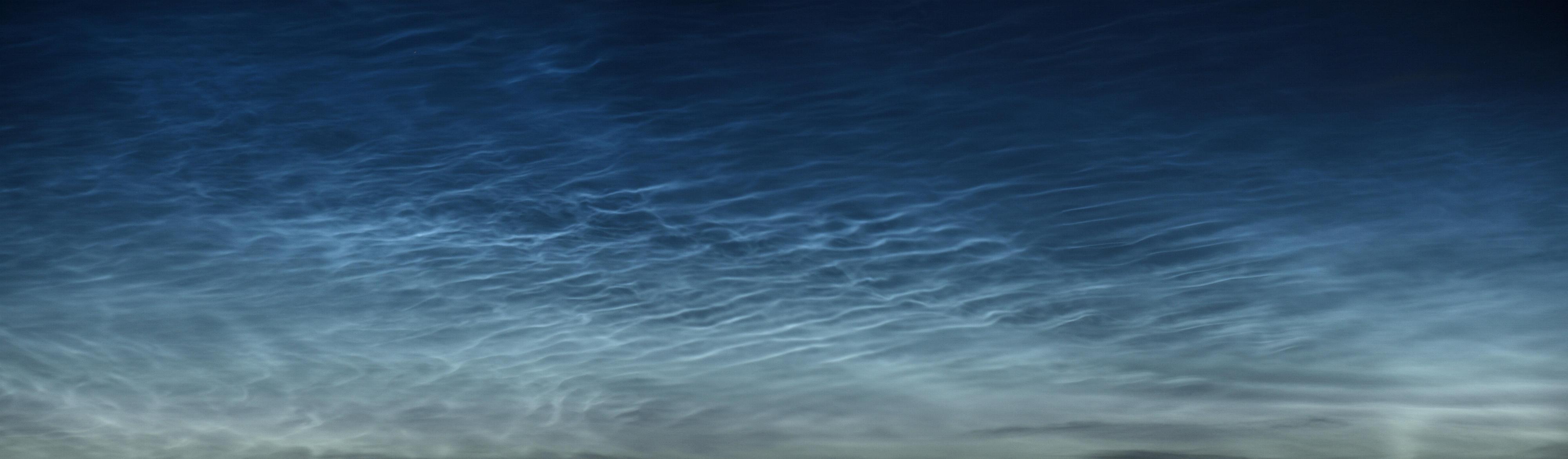 Es tauchten am Nordhorizont NLC auf, die ich hier mit einem Teleobjektiv fotografiert habe: Da ich am nächsten Tag früh zur Arbeit musste, habe ich meine Kamera in meiner Küche am Fenster aufgebaut.